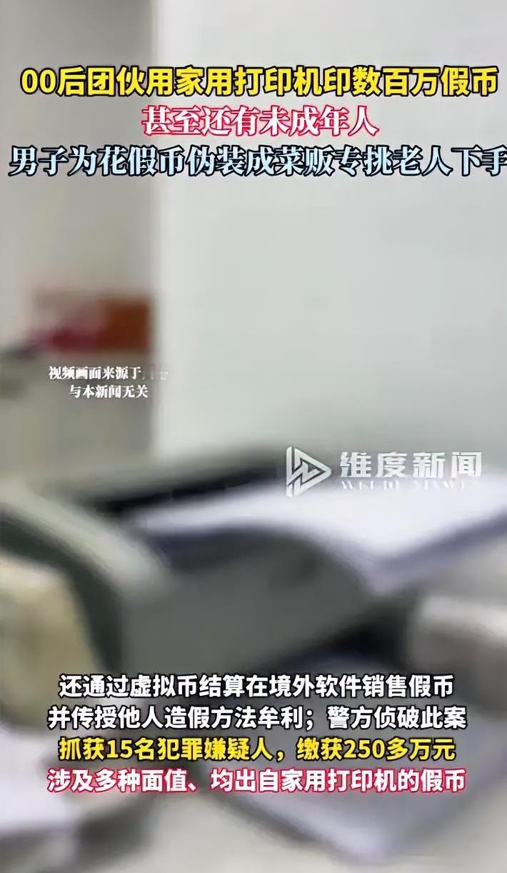 北京警方近日捣毁一个由00后主导的假币制造团伙,抓获15名犯罪嫌疑人,缴获250