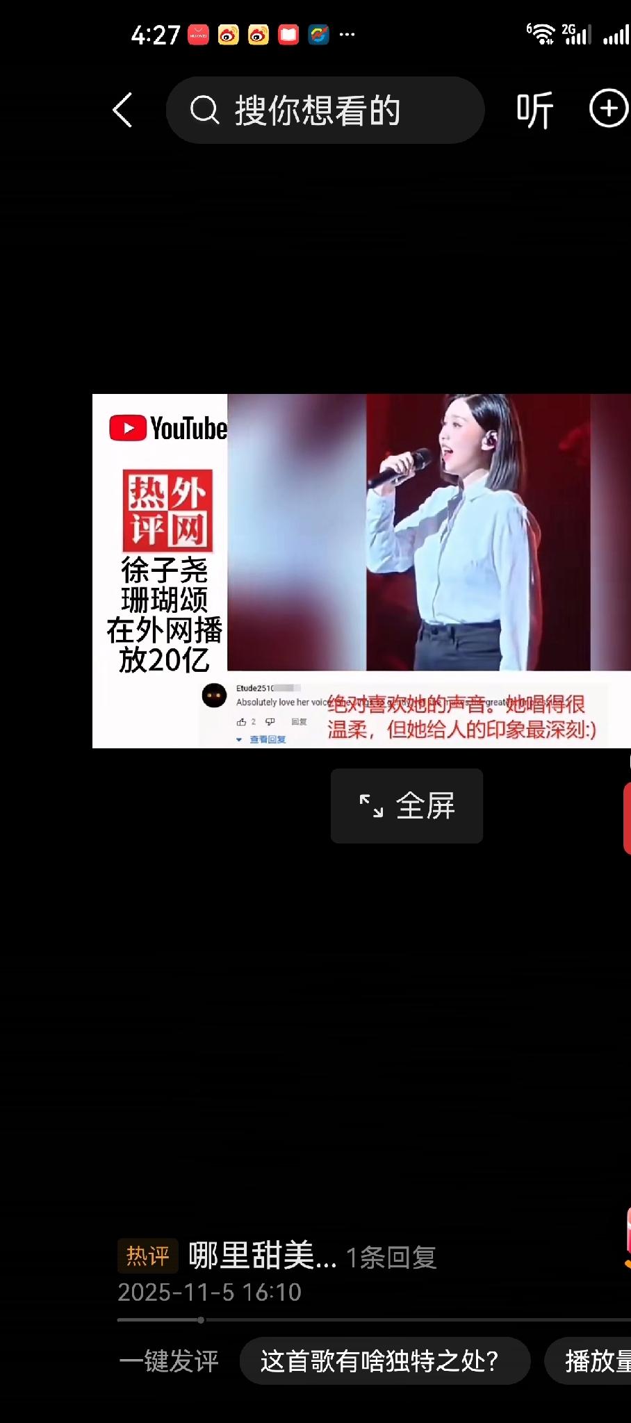 刀郎也想不到爱徒徐子尧唱的“珊瑚颂”,会在他全国巡回演唱会结束后大火起来。 尧尧跟着刀朗的巡演,在北京、济南等5站唱过“珊珊颂”,观众们评论颇高。 然而随着电视剧“沉默的荣耀”热播,徐子尧版“珊瑚颂”被导演组选入剧情背景曲,这个热度简直如七月流火,人民网、央视网还有新华社都在播放《珊瑚颂》,尧尧唱的此歌全网播放量己播20亿。 网友的评论更是饱含深情、感人至深。 福建网友说:徐子尧版《珊瑚颂》能被亿万人追棒,首先是她与《沉默的荣耀》的相遇,其次是她的干净、朴素、真情,也就是公之曰 : 以“意”取胜也! 山东网友说:为什么现在听的感觉已经不一样了,而且还有流不完的眼泪,”沉默的荣耀”配上徐子尧此歌,简直是太完美了 江苏网友说:伴随着徐子尧流自心灵的歌声,我更能理解了这就是哪一代人的信仰,今天的幸福生活感恩有他们的牺牲奉献精神!致敬英雄先烈[祈祷][祈祷][祈祷][祈祷][祈祷][祈祷][祈祷][祈祷] 请朋友们评论区赐教。