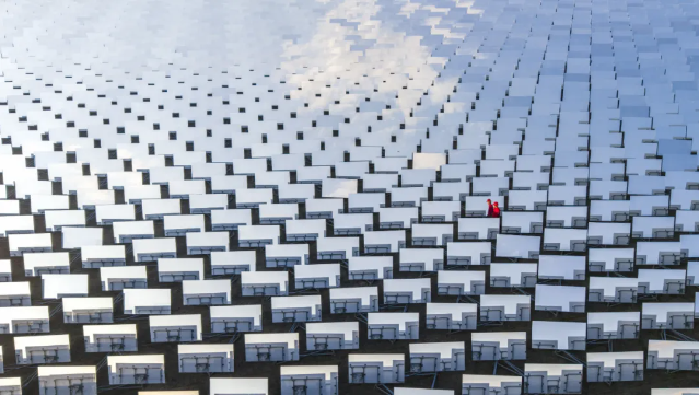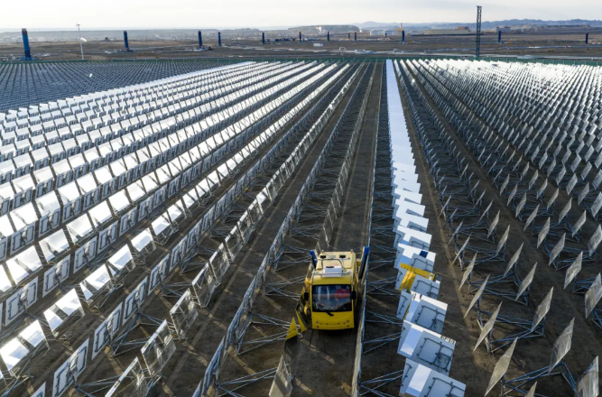 23712面高精度定日镜组成“聚光矩阵”,打造石油行业“光热+稠油”绿色开发样板。克拉玛依融媒记者闵勇摄