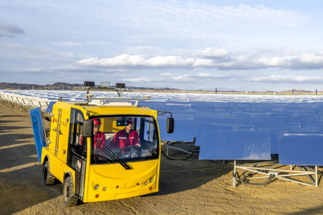 11月2日,维护人员驾驶清洁车清洗定日镜镜面。《新疆石油报》记者张睿摄