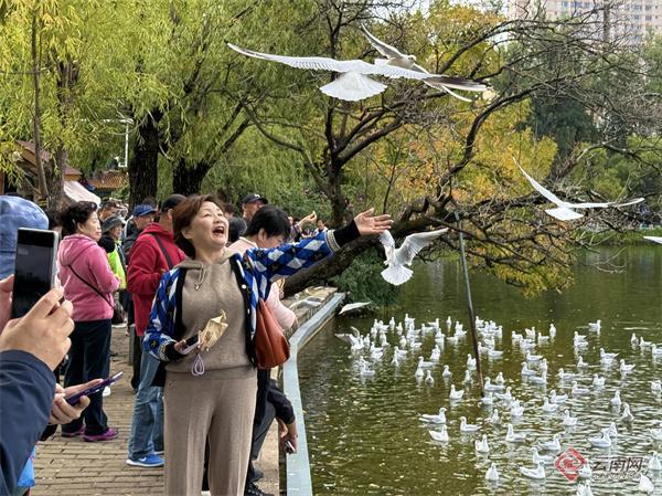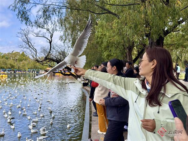 10月29日清晨,翠湖公园南湖塘迎来了今年首批约60只红嘴鸥,拉开本年度昆明人与红嘴鸥“冬季之约”的序幕。记者从翠湖公园获悉,截至11月6日,飞临翠湖的红嘴鸥数量已激增至约2000只,它们洁白的身影在碧波荡漾的湖面上自由翱翔,与湖光山色相映成趣,为昆明增添了无限生机与活力。