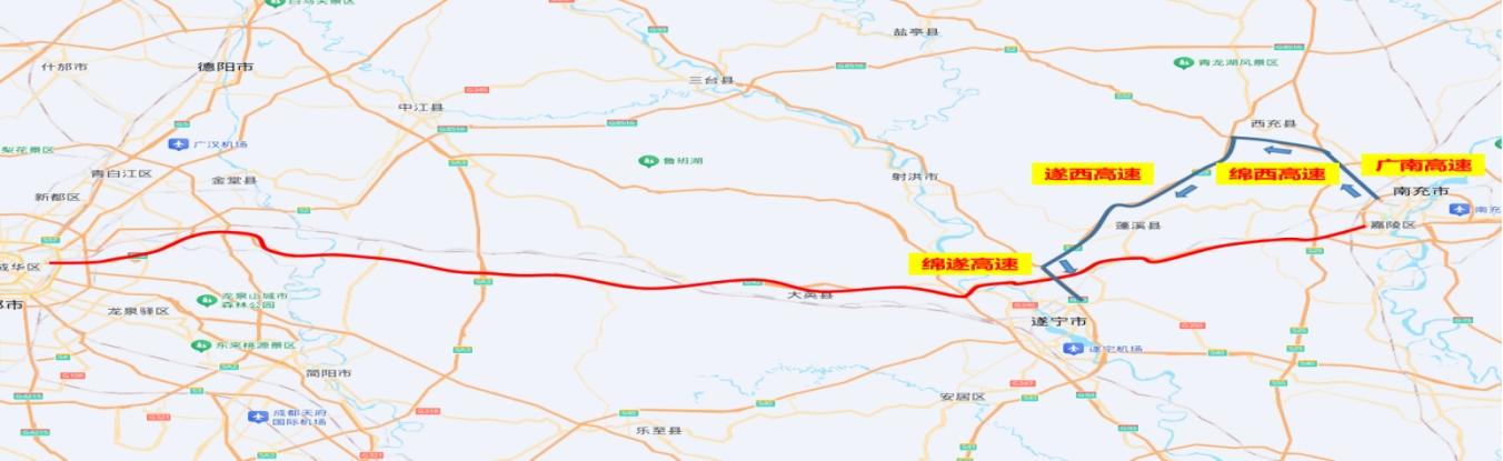 如何绕行?其中,南充至遂宁方向车辆需经G75兰海高速广南段→S32绵西高速→S29遂西高速→G93成渝环线高速绵遂段前往。