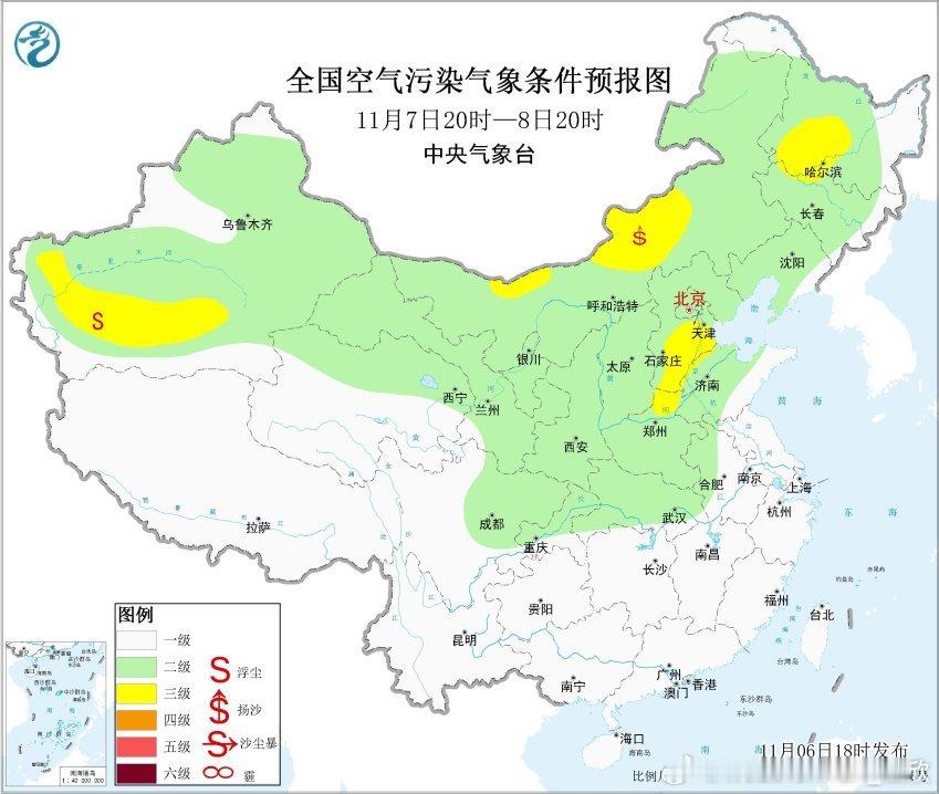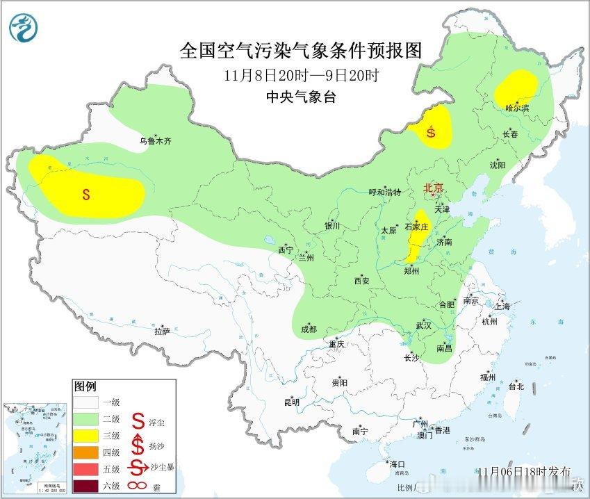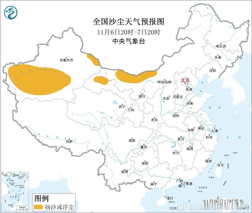 另外今天傍晚在甘肃酒泉依然存在沙尘污染导致空气质量爆表。6日夜间至8日,新疆南部、甘肃中部、内蒙古中西部等地的部分地区有扬沙或浮尘天气。