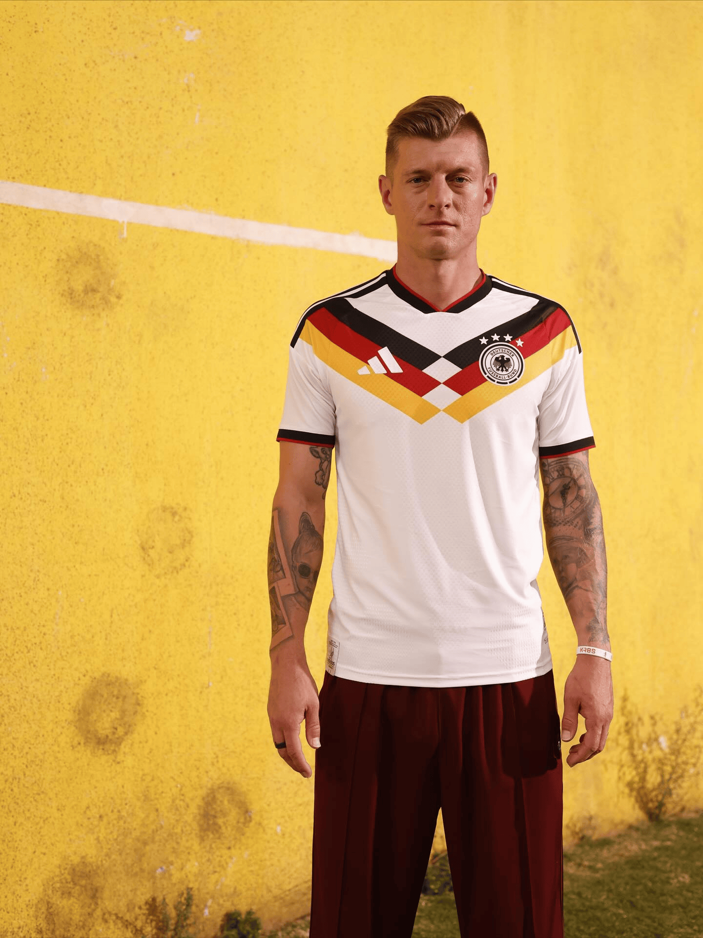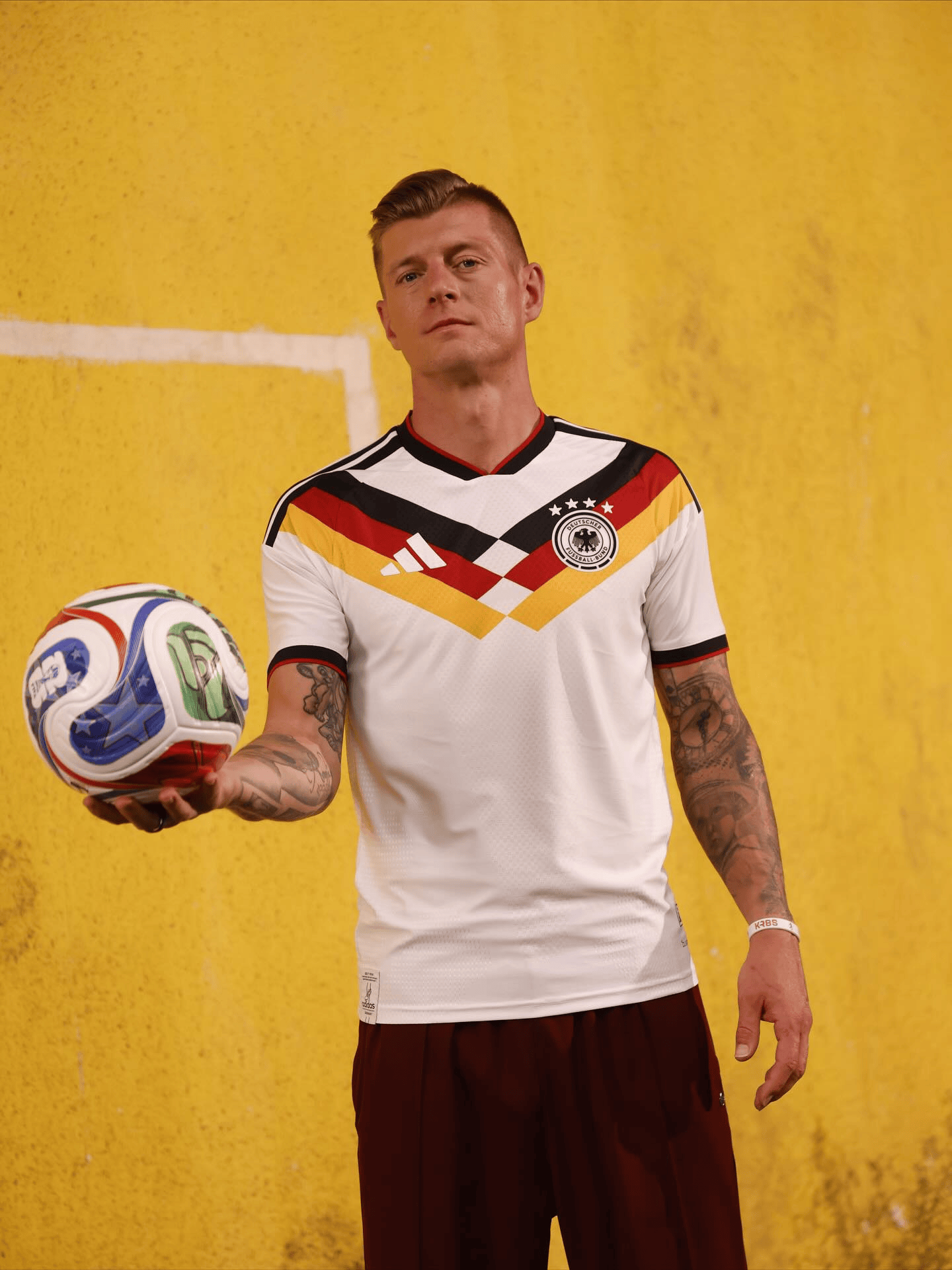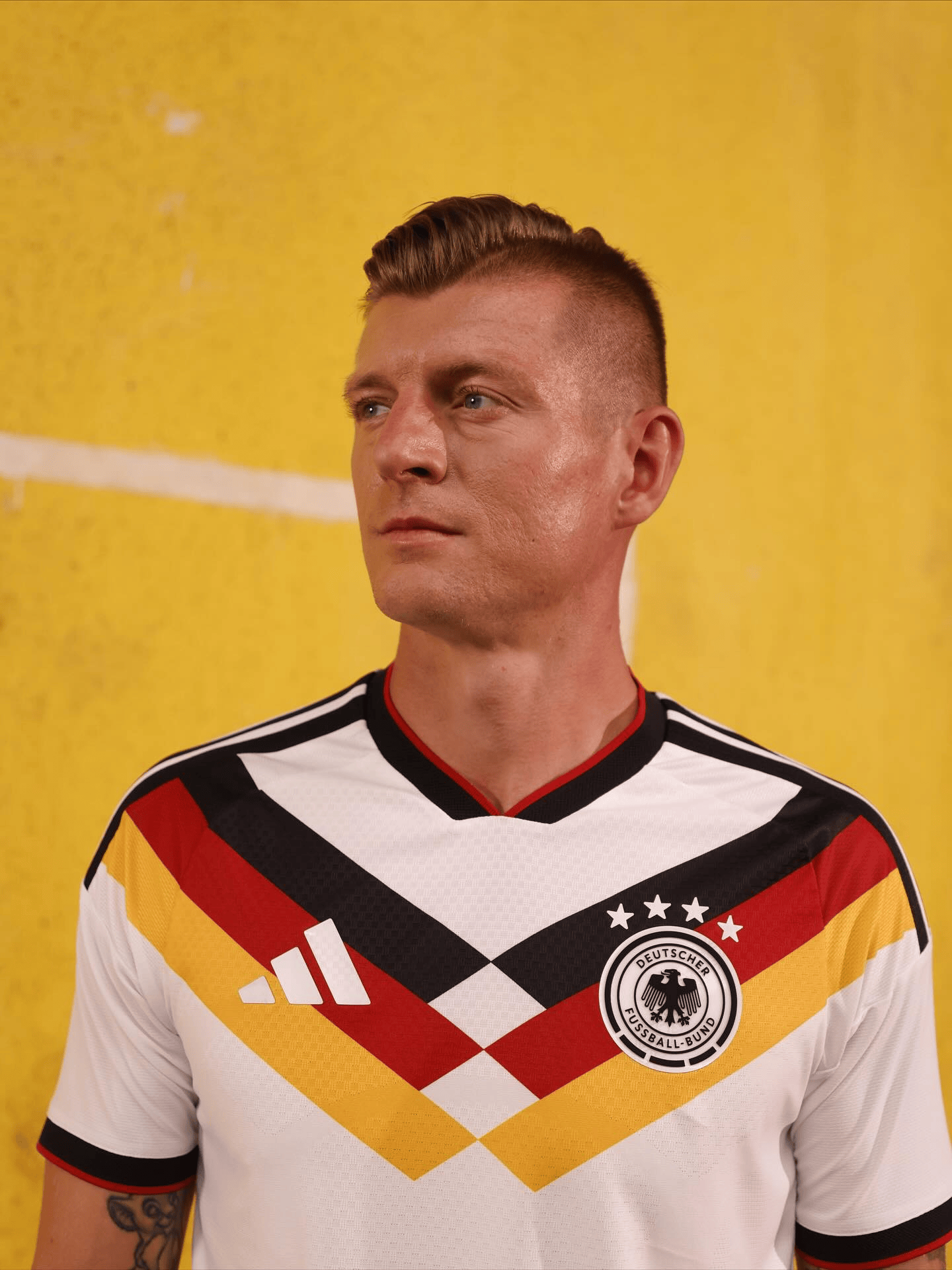 虎扑11月06日讯阿迪达斯在日前发布了德国队2026世界杯周期的官方球衣,他们旗下已经退役的巨星托尼-克罗斯也参与了球衣宣传照的拍摄。