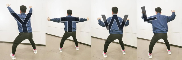 Y动作主要锻炼下斜方肌,T动作主要锻炼中斜方肌、菱形肌,W动作主要锻炼中下斜方肌、菱形肌,L动作主要锻炼冈下肌、小圆肌。