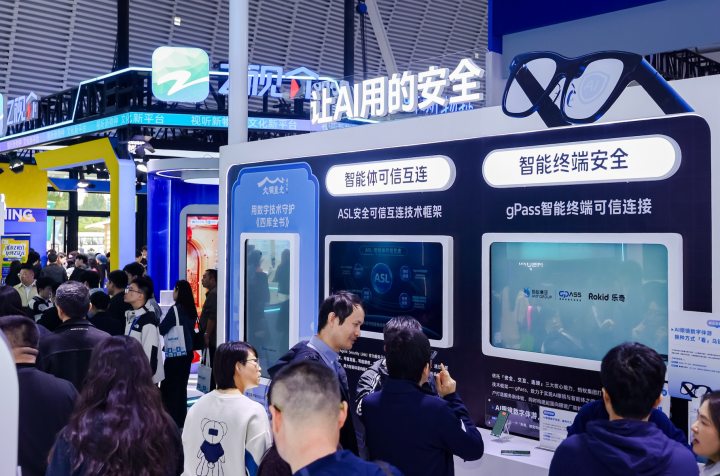 搭载gPass技术的AI眼镜体验区吸引众多参观者驻足,现场观众戴上AI眼镜,只需给出语音指令,即可体验大会智能体“桐小乌”,享受沉浸式导览服务。作为全球首个智能终端可信连接框架,gPass集成了“安全、交互、连接”三大核心能力,为AI眼镜与智能体之间的交互构建了安全屏障。