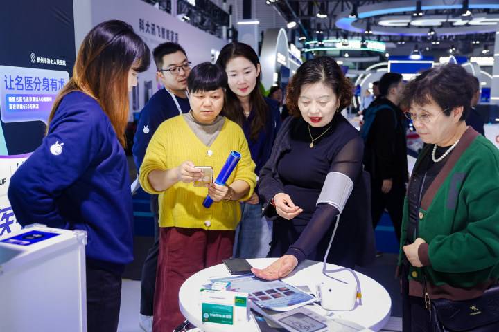 世界互联网大会博览会上,蚂蚁AI健康管家AQ引来众多参观者驻足。