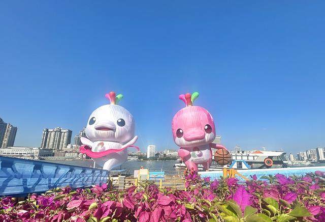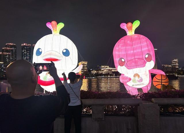 “听到白鹅潭这里来了新装置,就带着家人特意来打卡,小朋友一看到这两个吉祥物就赶紧冲过来,我们全家都觉得他们特别可爱。”广州市民卢先生说到,“这两个吉祥物的设计元素丰富多元,和我们岭南文化开放包容多元的内涵是一致的,‘激情全运会,活力大湾区’的十五运主题口号也很琅琅上口,无论是用粤语还是普通话读,都很带劲。”谈及十五运赛事,他表示,最关注男篮和跳水比赛。