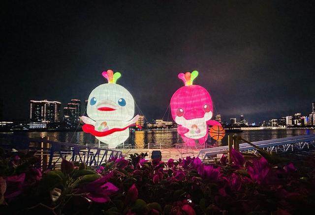 近日,高达15米的十五运会吉祥物大型装置在白鹅潭畔亮灯,作为十五运会和残特奥会广州赛区景观与氛围营造的重点项目,这一大型装置的亮相,既为全运会的到来注入热烈氛围,也为白鹅潭的夜色增添了青春与活力。