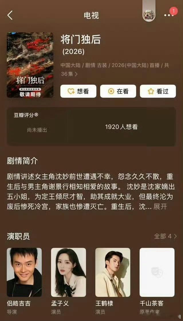对接确认孟子义演将门毒后对接确认!孟子义《尚公主》后无缝进组《将门毒后》,孟子义