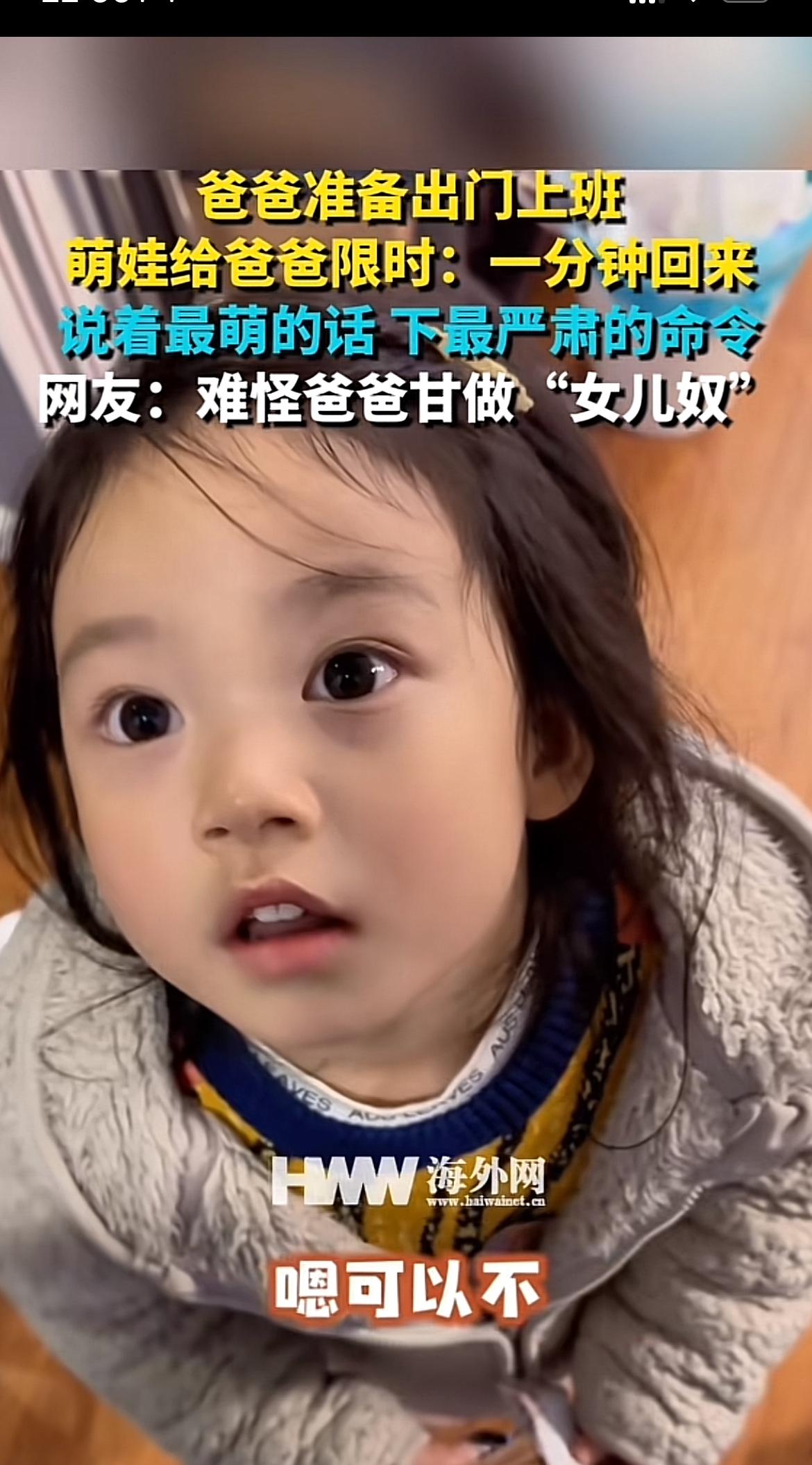 现在“女儿奴”爸爸可太常见啦。就像有个萌娃总给爸爸卡卡子扎辫辫,爸爸心甘情愿被女儿摆布,妥妥的女儿奴。还有宝宝给爸爸撒娇、女儿亲吻父亲这些温馨瞬间,哪个爸爸能扛得住啊。 网友们看到萌娃给爸爸下“最萌最严命令”,爸爸还乖乖听话,都觉得特别有意思。这背后其实是满满的爱,爸爸们在女儿面前,再强硬的心也能被融化。女儿的一个小要求、一个小举动,都能让爸爸乐开花,心甘情愿宠着女儿,这就是亲情的魔力呀。