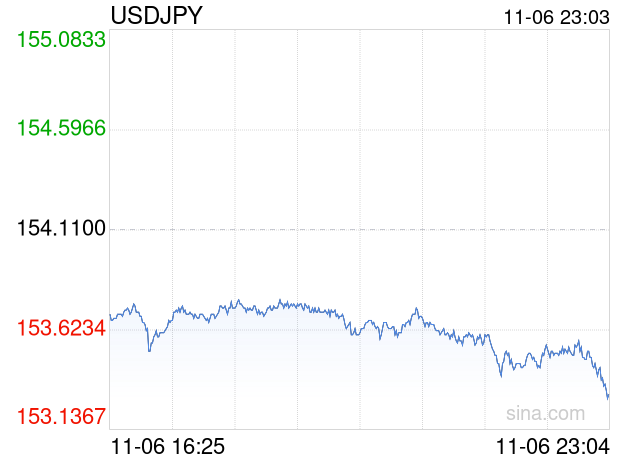 11月06日 美元兑日元跌破153.3100 折算100日元汇率兑4.6446人民币