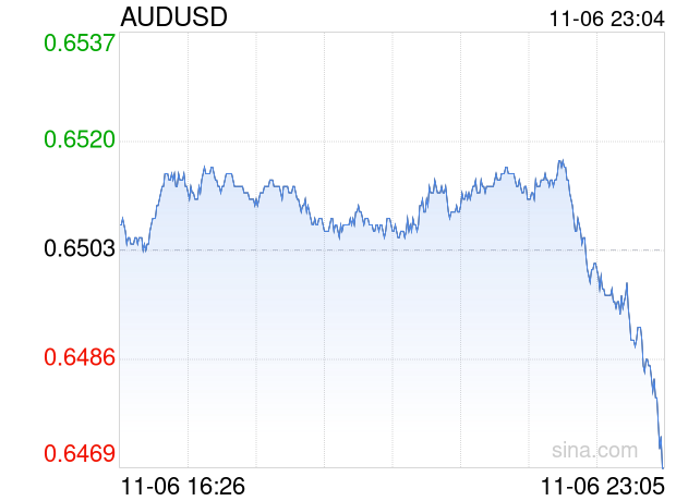 新浪外汇消息2025年11月06日,截至23时04分,外汇市场上澳元兑美元汇率跌破1澳元兑换0.6470美元。跌幅为-0.5075%