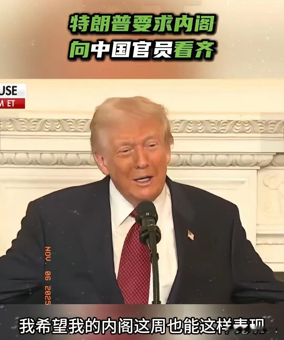 谁能想到,外媒报道的这波操作,居然让国际政坛多了个热议话题! 当地时间11月5日,据外媒消息,特朗普在白宫谈及中美会晤时,提到中方官员的专业表现让他印象深刻,比如专注投入、恪守沟通礼仪等,随后要求自己的内阁在本周内借鉴这样的专业状态。 其实这背后,是国际交往中对专业素养的普遍认可。特朗普此前的内阁团队因用人倾向曾引发外界讨论,如今强调“借鉴专业表现”,本质是对政务处理中严谨态度的重视。 但要注意的是,专业素养从来不是表面模仿就能实现的,核心在于长期的机制培养和职业积淀。毕竟国际交往中,真正的专业是实力与态度的双重体现。 你觉得政务团队的专业表现,更依赖后天培养还是机制保障?欢迎留下你的看