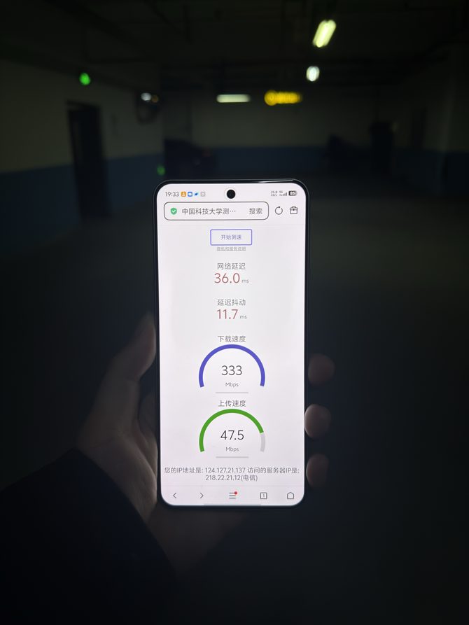 通信能力大幅升级,首创360°对称穿墙天线,中框天线占比90%,信号强度至高提升118%,平均提升60.3%,信号覆盖度平均提升15.2%。双频GPS+双频北斗系统,GPS支持L1、L5频段,北斗支持B1l、B2a频段,卫星信号覆盖更广,抗干扰能力更强,无论游戏横握、电话接打、日常手持还是放置桌面,都能避免手指遮挡天线,实测在地库的弱网环境下信号也能保持很好的效果,使用测速网站测速测得下载速度333Mbps/S;上传速度47.5Mbps/S。高架、高楼等信号遮挡及多径场景下也能精准定位。