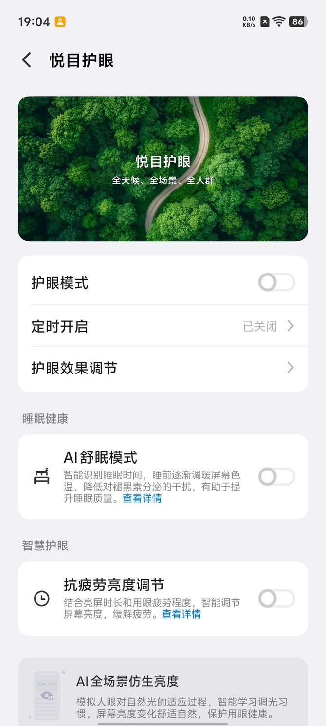AI舒眠模式会智能识别睡眠状态,动态调节屏幕色温,帮助改善睡眠质量;抗疲劳亮度曲线则随用眼时长逐渐柔化亮度,缓解眼部肌肉紧张。
