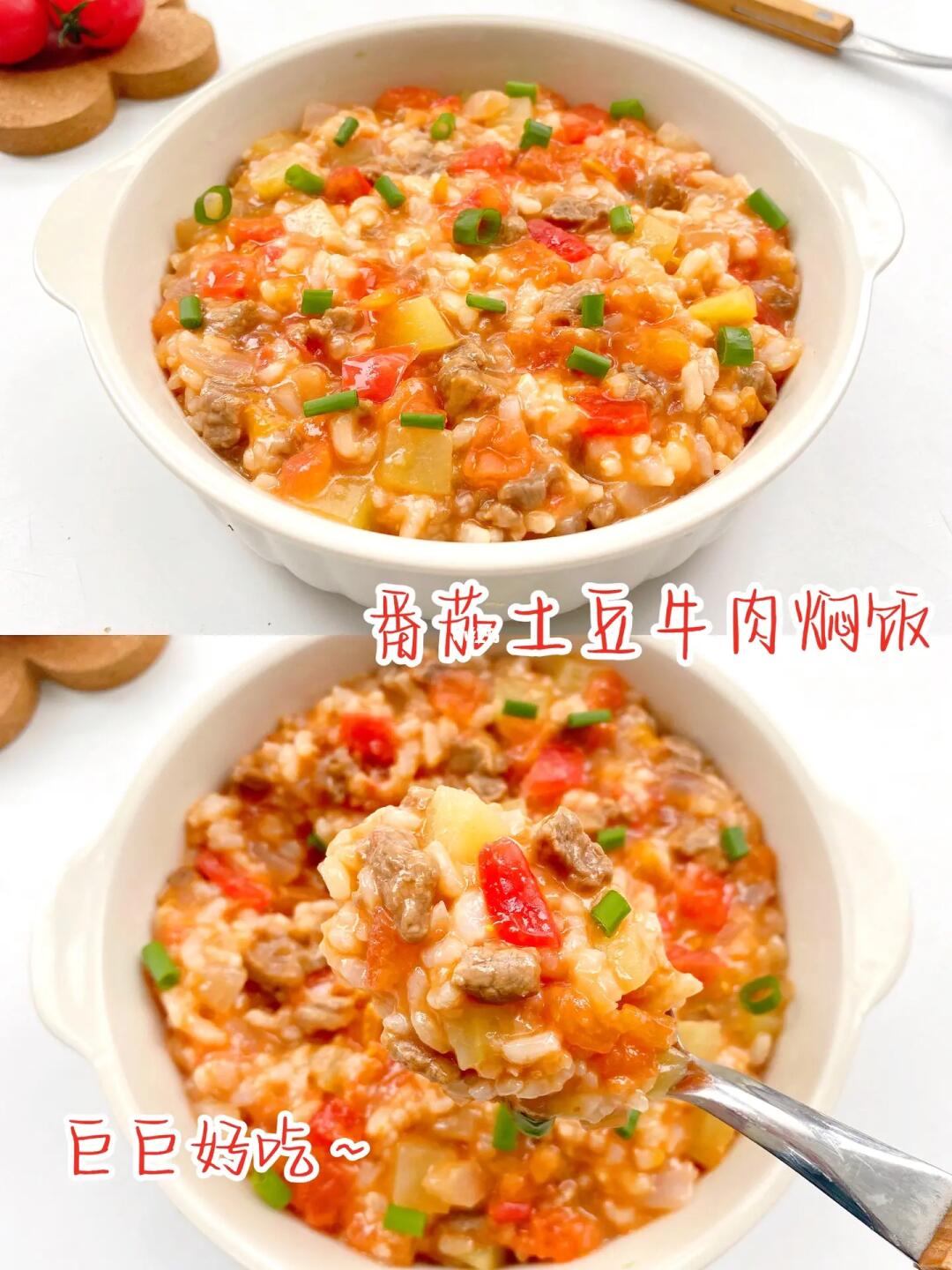 🍅今天给宝宝做了简单快手又营养足足的番茄土豆牛肉烩饭,光是听这几种食材搭配在一起,就知道有多好吃了吧❗️酸甜的番茄、糯糯的土豆喝软嫩嫩的牛肉,每颗米粒都吸饱了汤汁,真的是食欲满满呀‼️