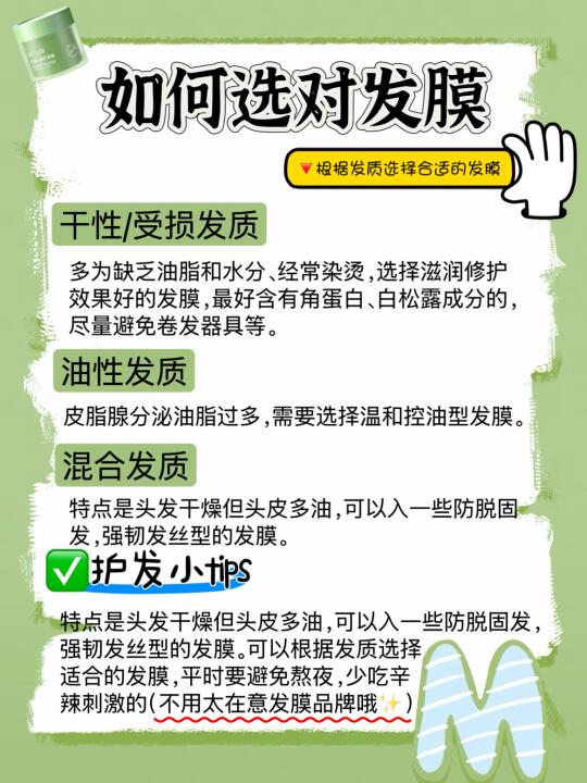 🌟选择一款适合自己发质的发膜🧴:受损的发质就用修护型发膜,天生沙发就用滋润型发膜,大油头就用清洁型发膜
