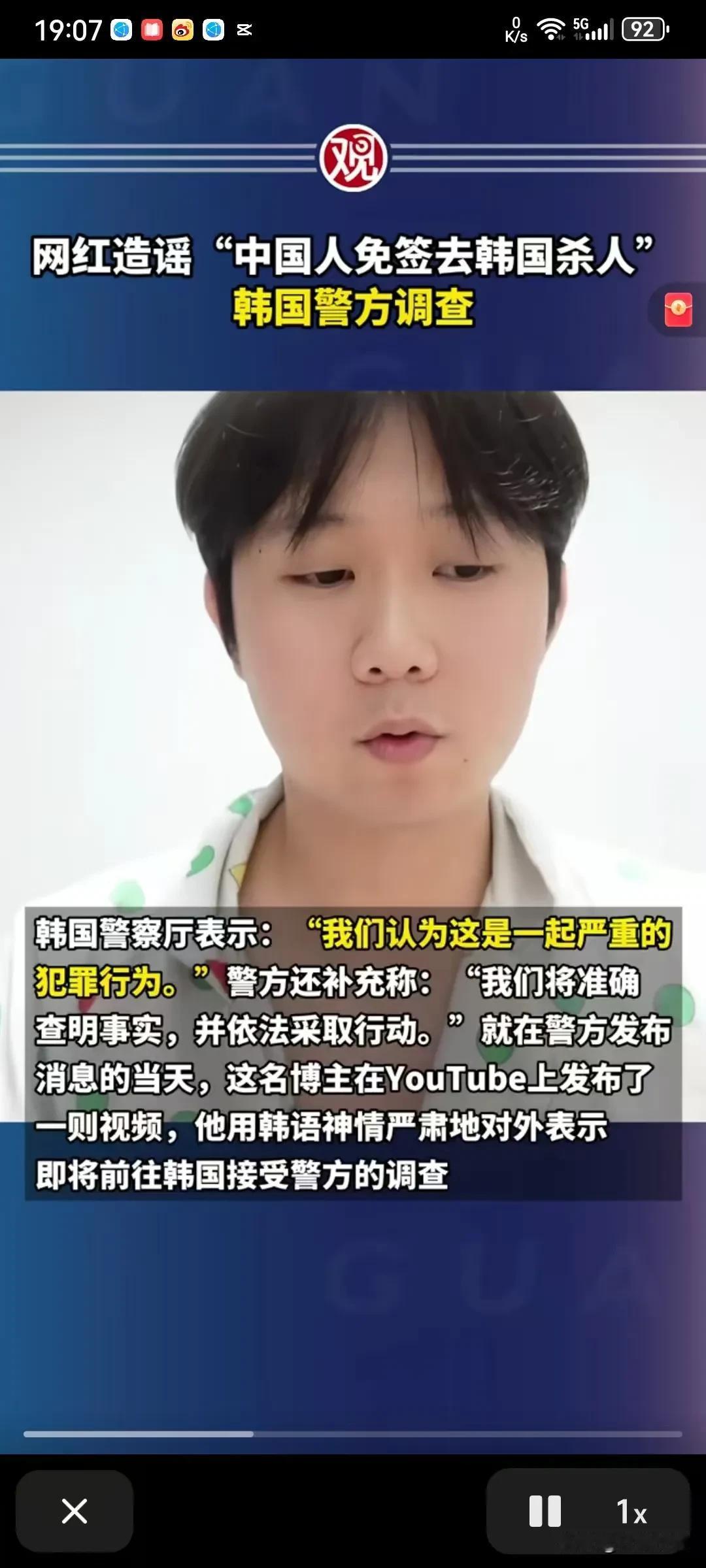 韩国网红造谣中国人免签到韩国杀人,被韩国警方逮捕了,更加诡异的是,这个网红主要活跃于日本网络社会,这个造谣的视频也是用日语发布的,不过韩国警方快速查办了它,认为它这样是损害韩国国家形象!其实有些韩国人特别是有些韩国网红对中国游客非常不尊重,各种贬低和造谣,都不知道韩国有什么好玩的,非去不可吗?之前还有一个韩国女网红直接公开说素质高的中国人不会去韩国,去的都是低素质的,人家韩国人都这样说了,为什么还是有些中国游客非去不可呢?真的搞不懂!
