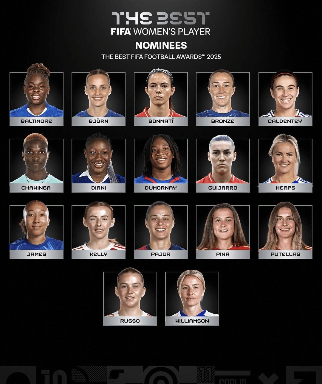 虎扑11月06日讯国际足联公布2025年女足年度最佳球员候选名单,