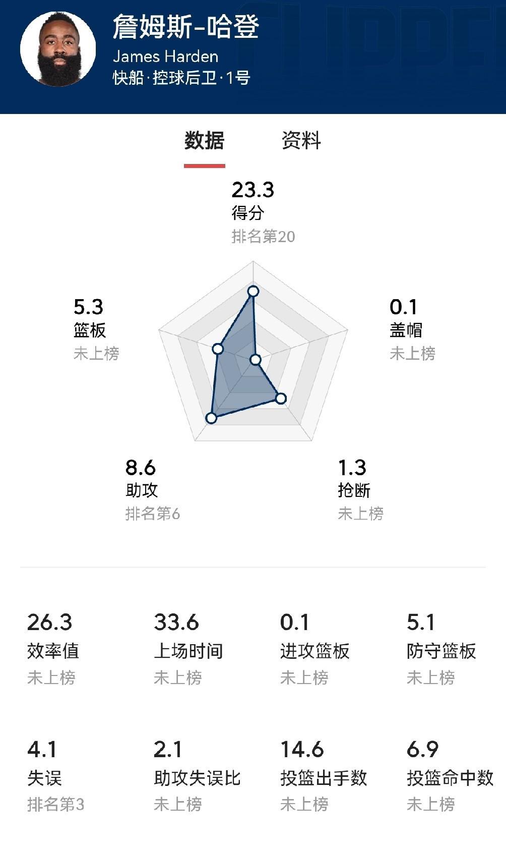 宝刀未老雄风在!参照哈登年龄,原本接受哈登本赛季场均15+3+5,下赛季10+2+3的,谁知道哈登竟然还能交出20+5+5这样的超巨数据,真的是让我们球迷大大震撼了一把!