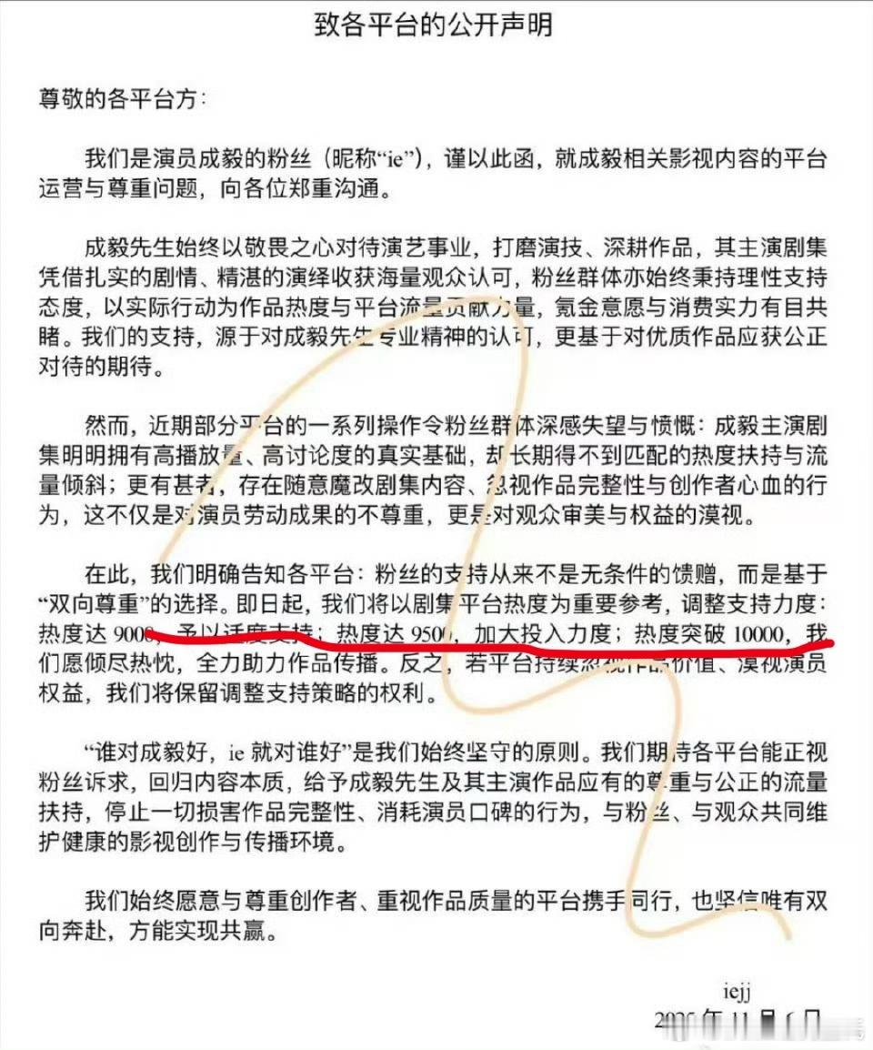 眼看着快超点了,成毅粉丝公然要求平台操作把热度氵到9500,然后再氵到破10000