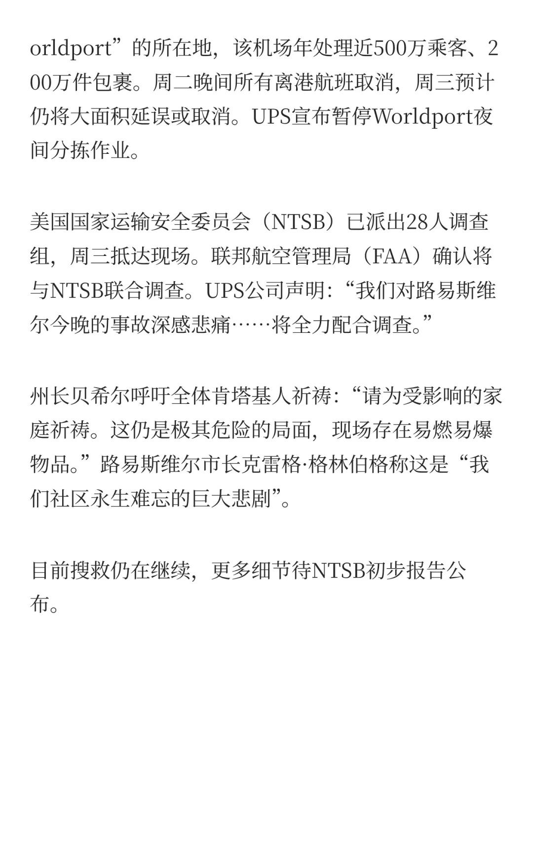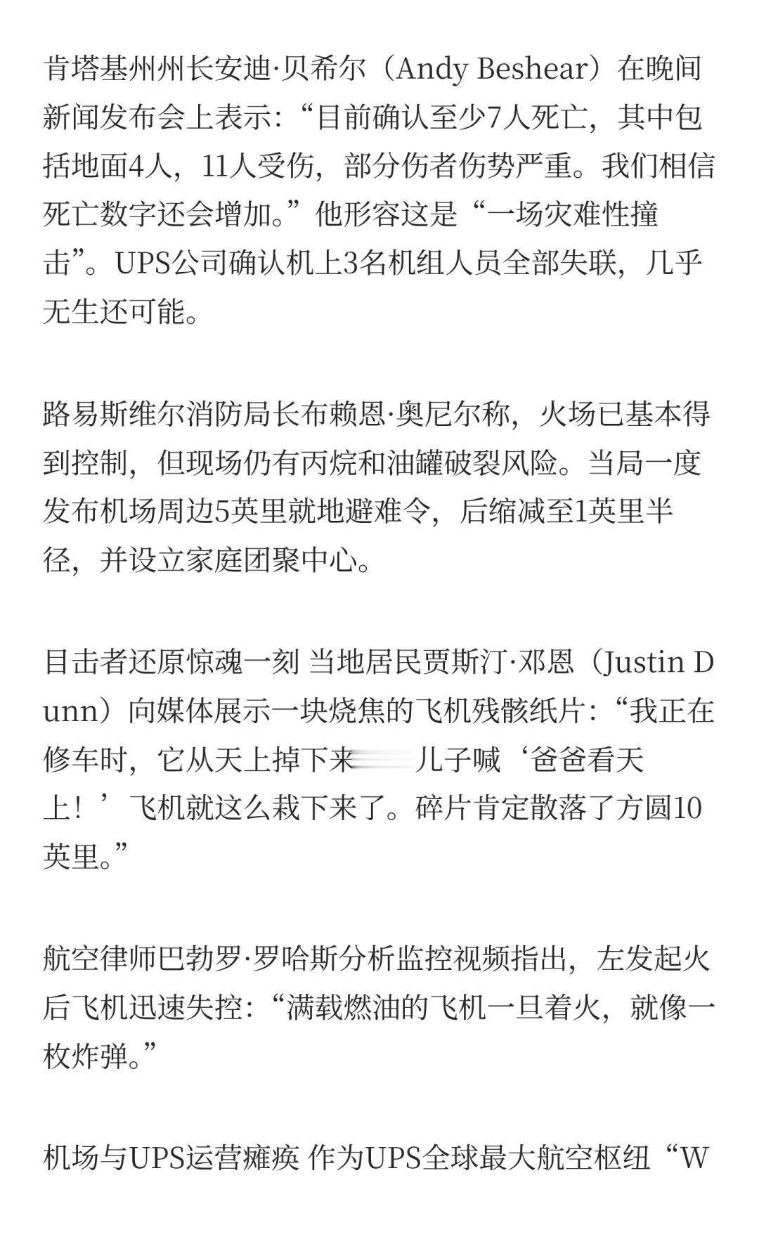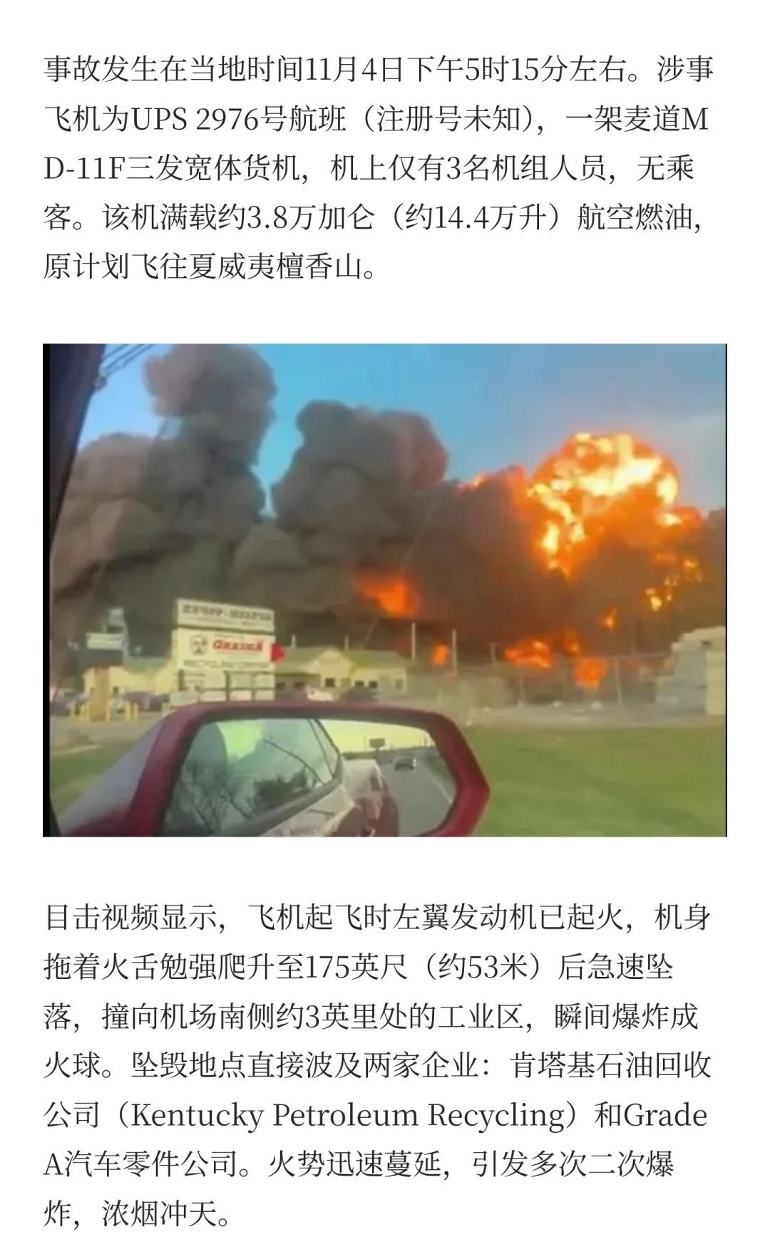 美国路易斯维尔UPS货机坠毁最新至少7死11伤 飞机失事 新闻 生活 美国 UP
