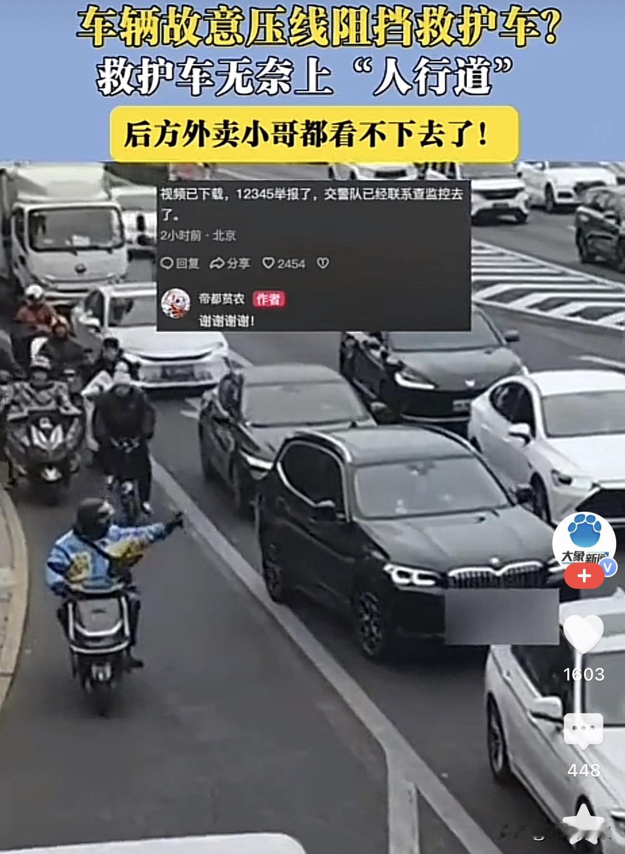北京,一救护车拉着警报准备超车,结果,一辆黑色宝马越野车却压着实线,救护车无奈只能压着马路牙子强行开了过去,可是当救护车刚刚看过去,宝马车竟然又打了一把方向,将路给让了出来,这时候,一外卖小哥看不下去了,当即伸着手指责起了宝马车,对此,网友表示,应该吊销宝马车的驾照。 视频中,救护车拉着警报,打算争分夺秒的从非机动车道开过去,可是,一辆黑色的宝马越野车却压着实线,正好把救护车给阻拦在后头,无奈,救护车只能打了一把方向,压着路边的马路牙子后行驶了过去。 让人无语的是,这时候,宝马车竟然向反方向打了一把方向,将道路给让了出来。此时,在救护车身后的一外卖小哥,全程见证了刚刚发生的事情,于是,外卖小哥伸着手指责起了这辆宝马车,不仅如此,全部过程,均被一市民给拍摄了下来。 事发后,有网友就表示,救人争分夺秒,宝马车的做法就是在杀人,应该吊销宝马车司机驾照。 还有网友说,一开始还觉得宝马车不是故意的,但是,当救护车行驶过去后,宝马车打了一把方向,这就是故意的了。 也有网友说,幸亏不是什么国产新能源品牌的司机,不然会被喷死不说,我们评论都会被法务投诉。 其实,无论宝马车是否是恶意不避让急救车,其行为都已经触犯了法律。 道路交通安全法第五十三条规定,警车、消防车、救护车、工程救险车执行紧急任务时,可以使用警报器、标志灯具;在确保安全的前提下,不受行驶路线、行驶方向、行驶速度和信号灯的限制,其他车辆和行人应当让行。 所以,宝马车没有进行让行,会面临罚款以及扣分的处罚。 有人说,救护车多等一秒,患者就有可能有生命危险,万一死了呢,宝马车司机要不要负责? 其实,对于这个问题,宝马车司机客观上延误了救护车行驶的速度,无论宝马车主观上有没有意识到,按照民法典第一千一百六十五条规定,行为人因过错侵害他人民事权益造成损害的,应当承担侵权责任。 所以,如果造成了患者死亡的话,宝马车司机是要承担赔偿责任得,只不过这个责任相对较小,比如10%,20%这样的。 但是,宝马车司机却无需承担故意杀人罪或者是过失致人死亡罪的刑事责任,毕竟,患者死亡是自身疾病导致的,并不是宝马车司机延误导致的,虽然延误属于一个介入因素,但是却不是导致患者死亡的重要或者唯一原因,所以,宝马车司机最终不仅要被扣分罚款,甚至还需要赔偿患者的相应损失。 其实,路上遇到救护车、消防车等,为其进行避让,即便闯了红灯,其实都可以不予处罚,而这是你唯一可以放心的、合法的闯红灯的理由。 对此,你对本案有什么看法? —————————— 关注我,带你评析法律热点,关注冷暖人生。 文章原创,抄袭必究