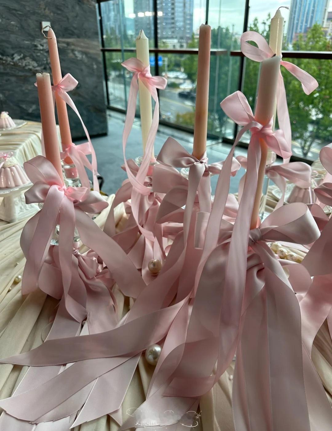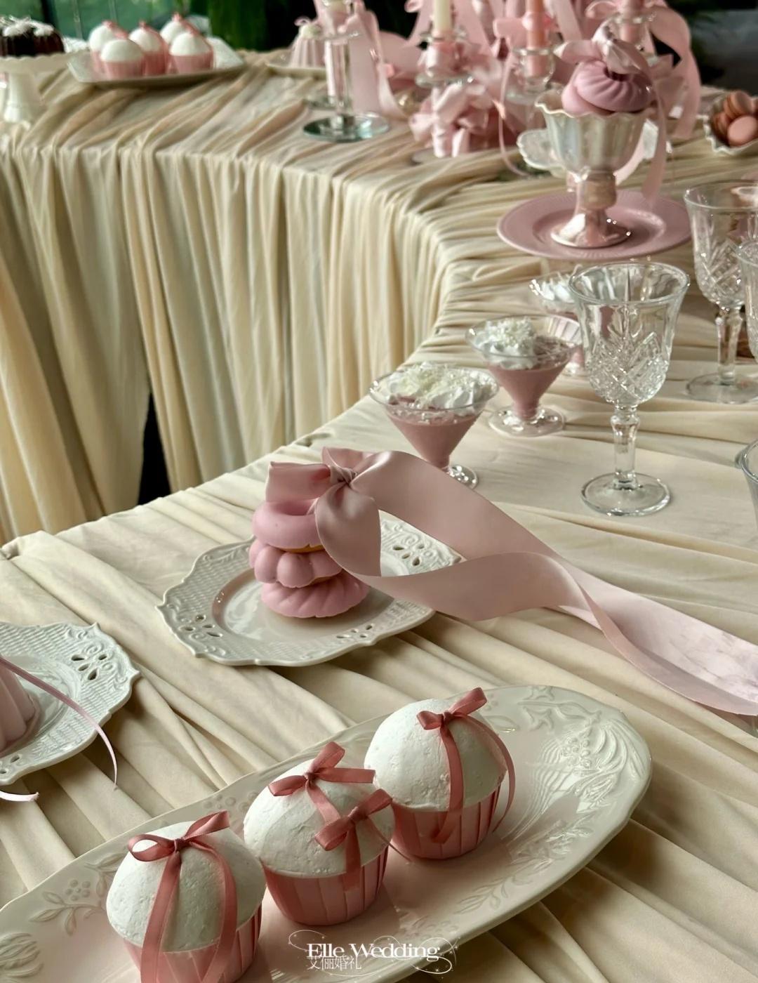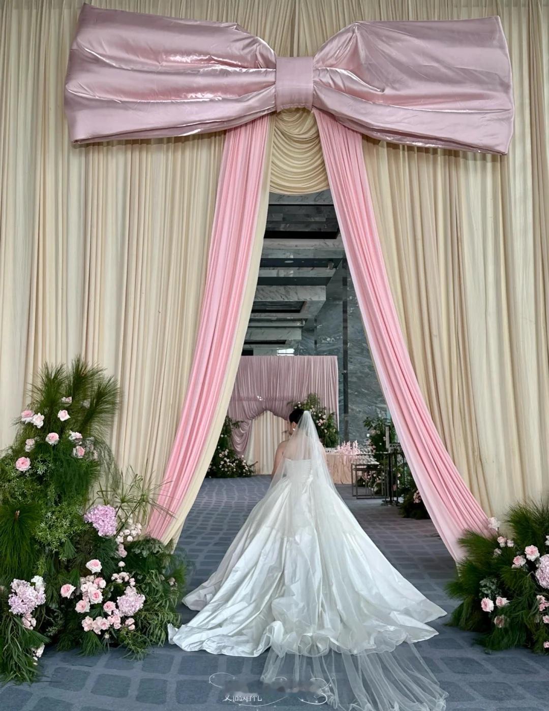 谁的少女心能扛住这样的婚礼!生图直出好爱 - 裸粉色的主色调的婚礼真的太戳少女心了✨ - 宴会厅的布幔层次错落,舞台感拉满,仿佛一场关于爱的话剧正在上演,参加完这场婚礼,我的婚礼灵感直接被锁死在“少女粉剧院风”里了! - 迎宾区的大蝴蝶结布幔设计太戳少女心了,缎面材质在光线下波光粼粼,搭配同色系花艺,每一处都精致得像艺术装置!还有丝带缠绕的蜡烛、爱心甜品,细节里全是少女的浪漫小心思~ - @艾俪婚礼ELIEWEDDING 出品 •