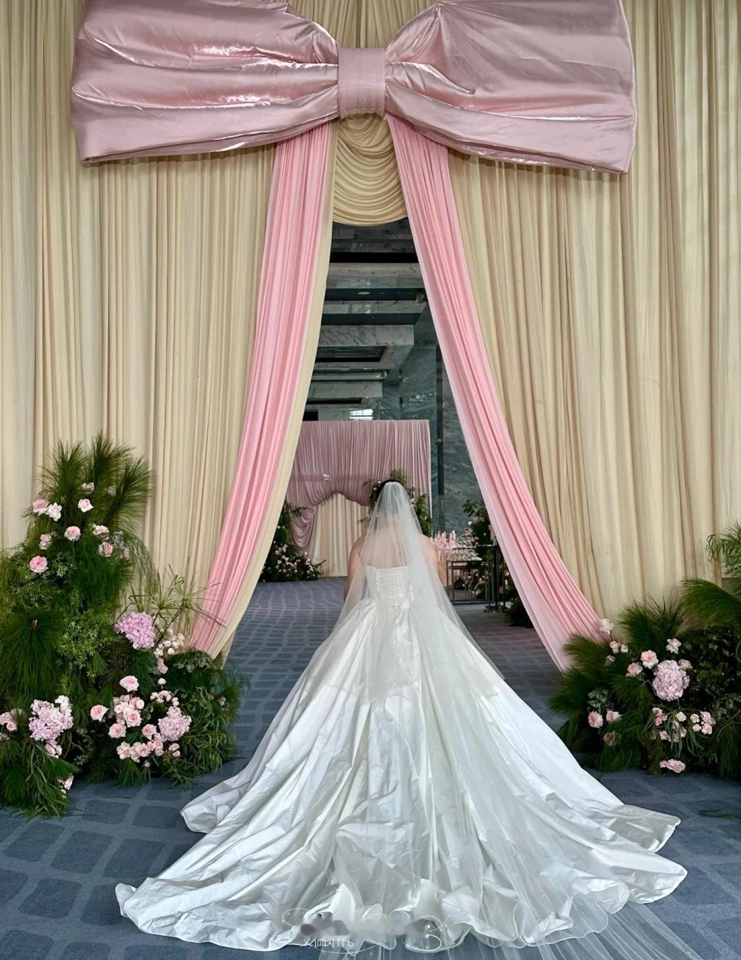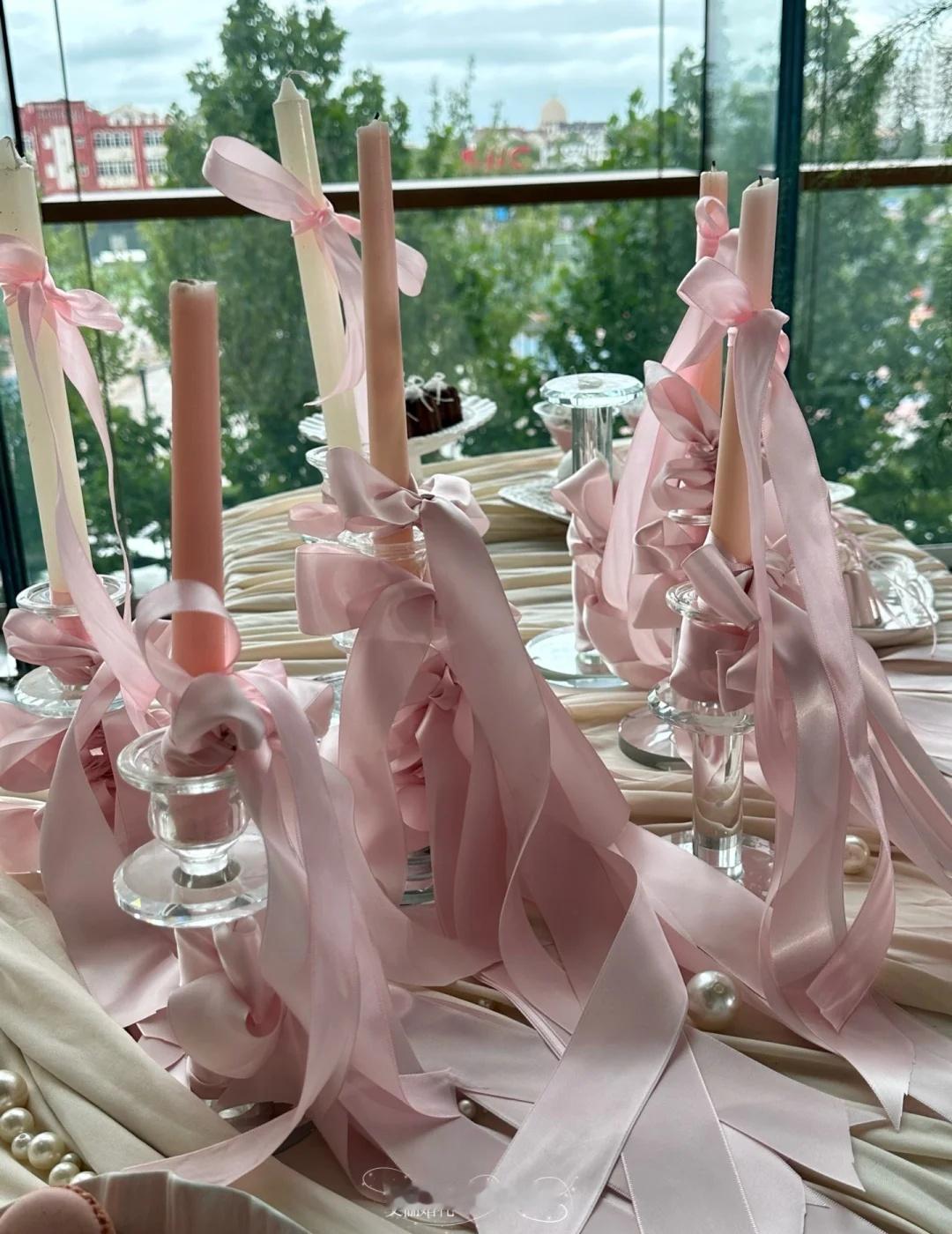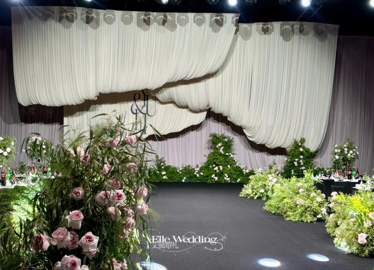 谁的少女心能扛住这样的婚礼!生图直出好爱 - 裸粉色的主色调的婚礼真的太戳少女心了✨ - 宴会厅的布幔层次错落,舞台感拉满,仿佛一场关于爱的话剧正在上演,参加完这场婚礼,我的婚礼灵感直接被锁死在“少女粉剧院风”里了! - 迎宾区的大蝴蝶结布幔设计太戳少女心了,缎面材质在光线下波光粼粼,搭配同色系花艺,每一处都精致得像艺术装置!还有丝带缠绕的蜡烛、爱心甜品,细节里全是少女的浪漫小心思~ - @艾俪婚礼ELIEWEDDING 出品 •