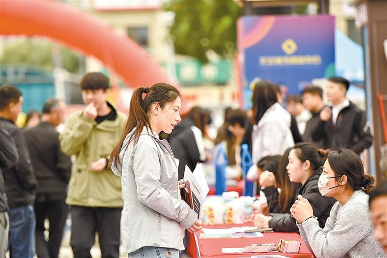 图为求职者正在向招聘方咨询岗位要求。本报记者马越本报通讯员王晖摄
