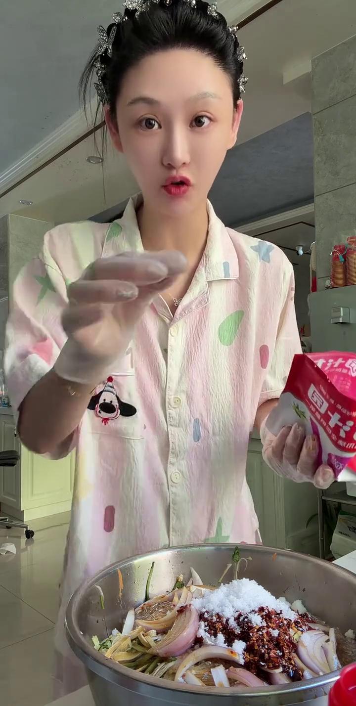 家常凉拌菜教程。 凉拌菜真的是我出过很多次教程,还有问我要教程的。 ·娃娃菜不需要焯水,只有豆皮焯了水,其他的全部都没有焯。这里面是娃娃菜、豆皮、胡萝卜、黄瓜、蒜、香菜、粉丝再切点洋葱,放什么?姐妹们家庭调料,这个是味极鲜卫士达卫生间这个我没有卖,上某宝搜卫士达味极鲜就有,醋我有卖。 ·没有添加剂的山西手工陈醋九块九三瓶,辣椒油我有卖二十九块九两罐,满满的辣椒都是辣椒段,老香了是辣椒油,香不是那种嗷嗷辣的,香油我有卖,特别好吃,小的时候的味道吃多了也不会腻。 ·这拌了一盆,我拌的多放料,不要放这么多,白糖可不放建议你可以少放,要不喜欢吃甜的可以少放,提鲜不是白糖不会抢,抢到那个,很甜很甜那种,放这些都不会很甜,因为这菜多,流血大汉,我的赛季丢。但这一盆我都能吃的,真的很好吃。 ·我跟你说姐妹,冬天不吃凉菜就像北方冬天了保暖屋里面更热,都得吃点凉菜。过年过年吃大鱼大肉就得拌点凉菜,就这凉菜绝对拿手,比一般饭店拌的都好吃。家庭调料就拌,你就吃。 ·刚才之前有放过盐了,放了两勺,自己放点盐调一下,直接切好就放盐了。 ·你就吃一半给妈妈一吃一个不吱声。辣椒油巨好吃,我们家吃没吃几罐了,一点不花钱,非常好吃,特别好吃。