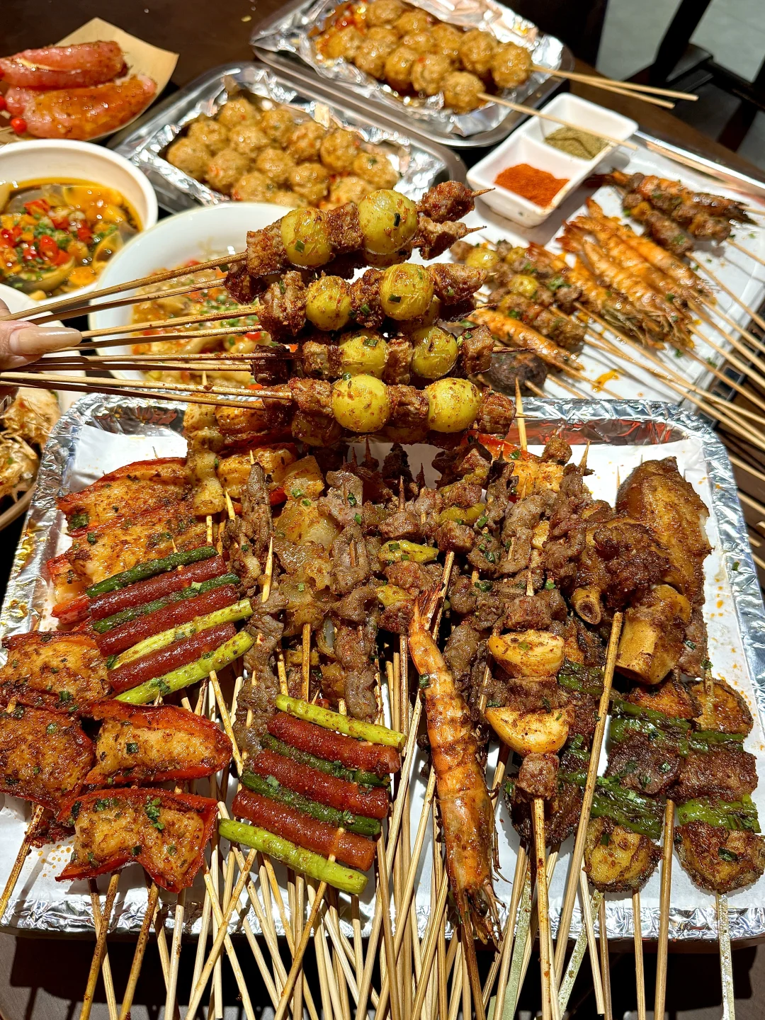 金丝蛋黄卷!上海终于也有了! 上面撒了玫瑰花酱,香香软软好好吃!!! 上海shou家自取鲜货烧烤🍖 明档厨房,烤串现切现穿,吃的很安心😌 烧烤推荐阳光玫瑰牛肉、菠萝牛肉、彩椒包虾滑🍤、黄牛五花趾……盲点不踩雷💥 纸包骨、锡纸手工丸、冰糖柚子、云南烤饵块、蛋黄烧卖都好好吃 还有猛火现炒的湘菜,锅气十足! 上海上海美食上海旅游上海探店上海新店上海周末去哪儿上海吃喝玩乐上海旅游攻略烧烤湘菜魔都探店周末去哪儿记录吧就现在笔记灵感