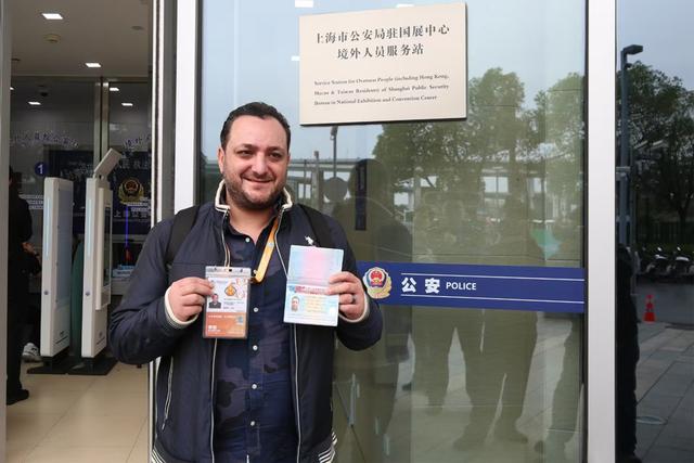 11月7日一早,第八届进博会外籍展商细井先生来到位于国展中心的境外人员服务站,出入境民警现场为他办理了居留许可延期手续,当日即可领证。