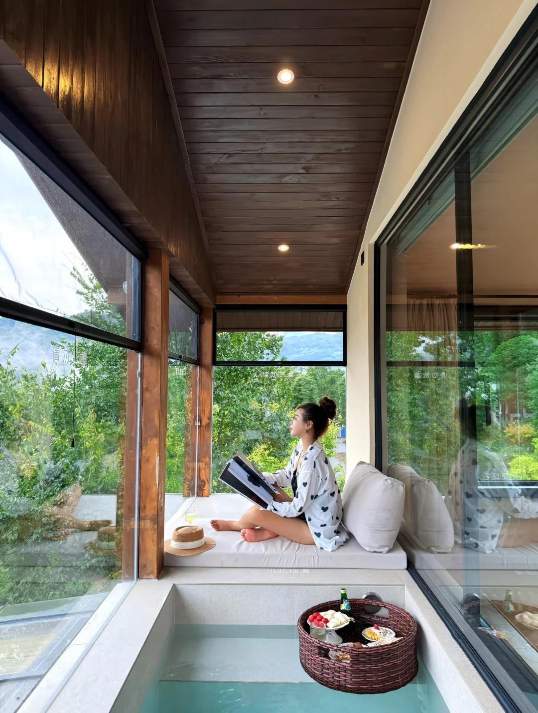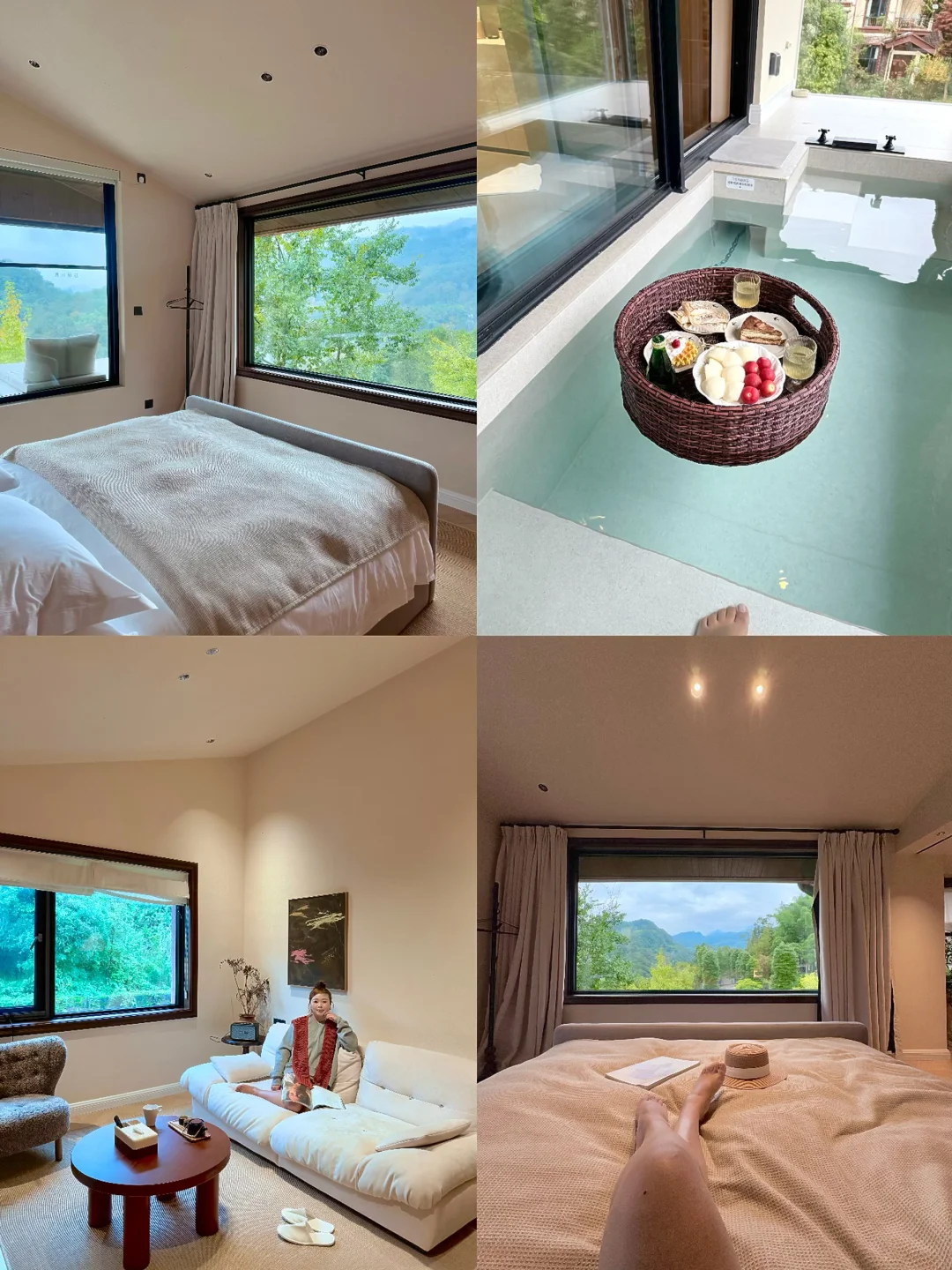 成都一降温,我立马逃去青城山泡私汤了! 谁能拒绝 这种“像家但比家更舒服”的民宿啊 · 刚到门口就被独栋别墅戳中——推开栅栏门,奶油色小楼藏在山林里,像闯进了山里的秘密基地~🌳 · 推开窗就是雾蒙蒙的青山,冷风吹不着半点。 进房间先直奔私汤——提前放好的暖汤冒着热气,落地窗把山景框成画,泡进去瞬间从脚暖到头发丝,在这里连发呆都成了享受。 · 吃饭不用愁:早餐是热乎的粥和小菜,晚餐是阿姨做的家常菜,完全是家里饭的香,不用出门就能吃舒坦。 · 在这儿待了两天,没赶一个景点,就瘫沙发、泡私汤、看山发呆,比在家躺平还治愈!青城山想躺平的姐妹,这波真的可以冲!🐛