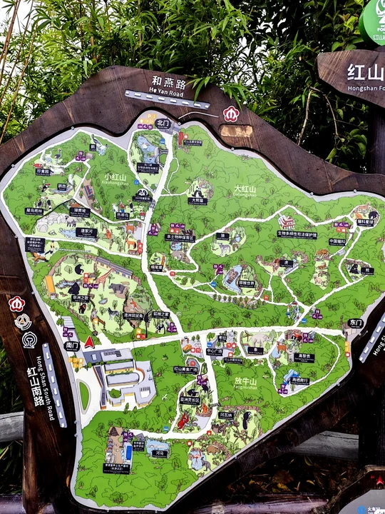 🎫北门→🐼大熊猫馆→大红山→放牛山→南门新区→小红山→🎫南门