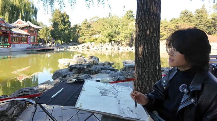 在京城古韵悠长的日坛公园内,青年画家周书杨以笔为媒、以墨为韵,在《书画里的中国》第三季节目组的镜头下展开了一场沉浸式写生创作。作为新锐艺术力量代表,他置身苍松翠柏与明清古建交织的园林景致中,将传统水墨技法与当代审美视角巧妙融合,以青年画家的鲜活视角为传统写生注入时代新意,让观众在氤氲墨香中感受历史文脉与自然之美的双重滋养。