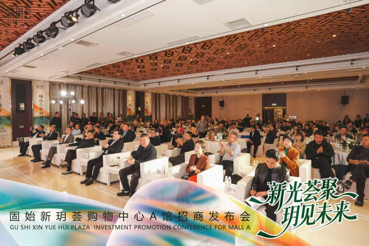 2025年11月5日,固始迎宾馆内宾朋满座、共襄盛举。备受各界关注的固始新玥荟购物中心招商发布会盛大启幕,这不仅是固始县招商引资工作的重要成果展示,更是全县推动商业升级、完善城市功能、激发县域经济活力的关键举措。固始县委、县政府及各相关职能部门、街道办领导亲临现场指导,与周大福、乾昌珠宝、潮宏基、萃华珠宝、星巴克、肯德基、必胜客、名创优品、TGP、苹果、华为、三星、小米、荣耀、胜道体育、耐克、阿迪达斯、斯凯奇、李宁、安踏、361°、特步、骆驼、九牧王、金利来、花花公子、以纯、韩风源、虎丫炒鸡、兰湘子等200余个国内外知名品牌代表齐聚一堂,共同见证这一承载固始商业转型梦想的重点项目正式亮相。