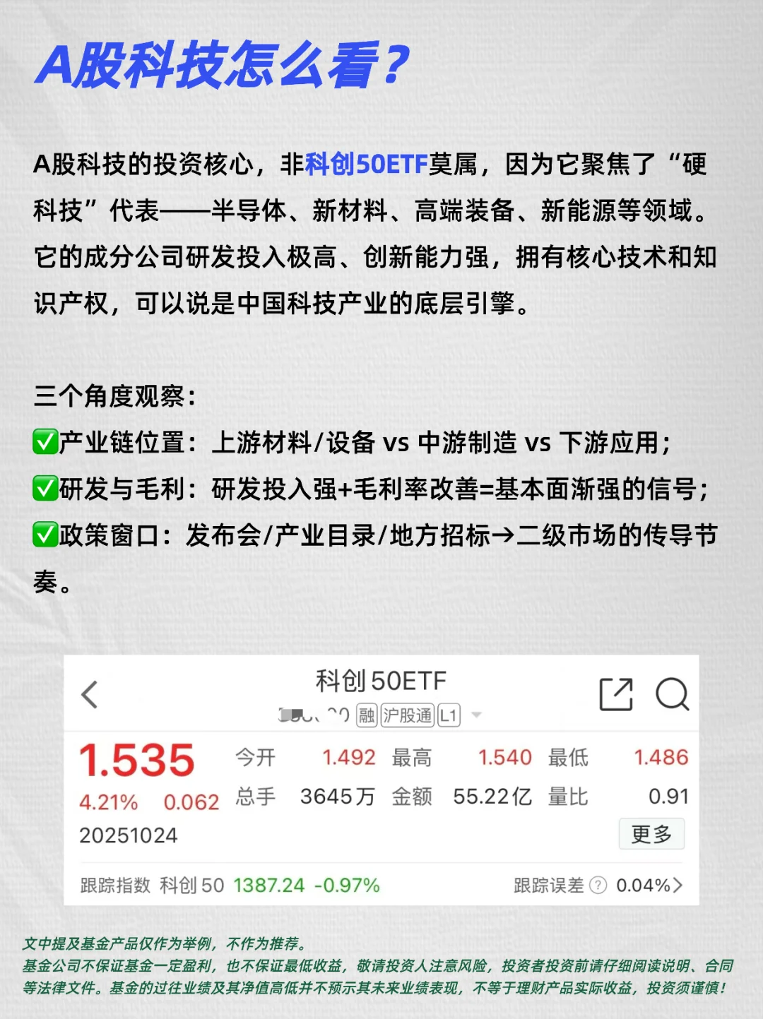 A股的科创50ETF,几乎浓缩了中国硬科技的核心力量。半导体、新材料、高端装备、新能源……这些领域都是国家重点支持的产业方向。白天看它,就能感受到中国科技产业最前线的脉动。