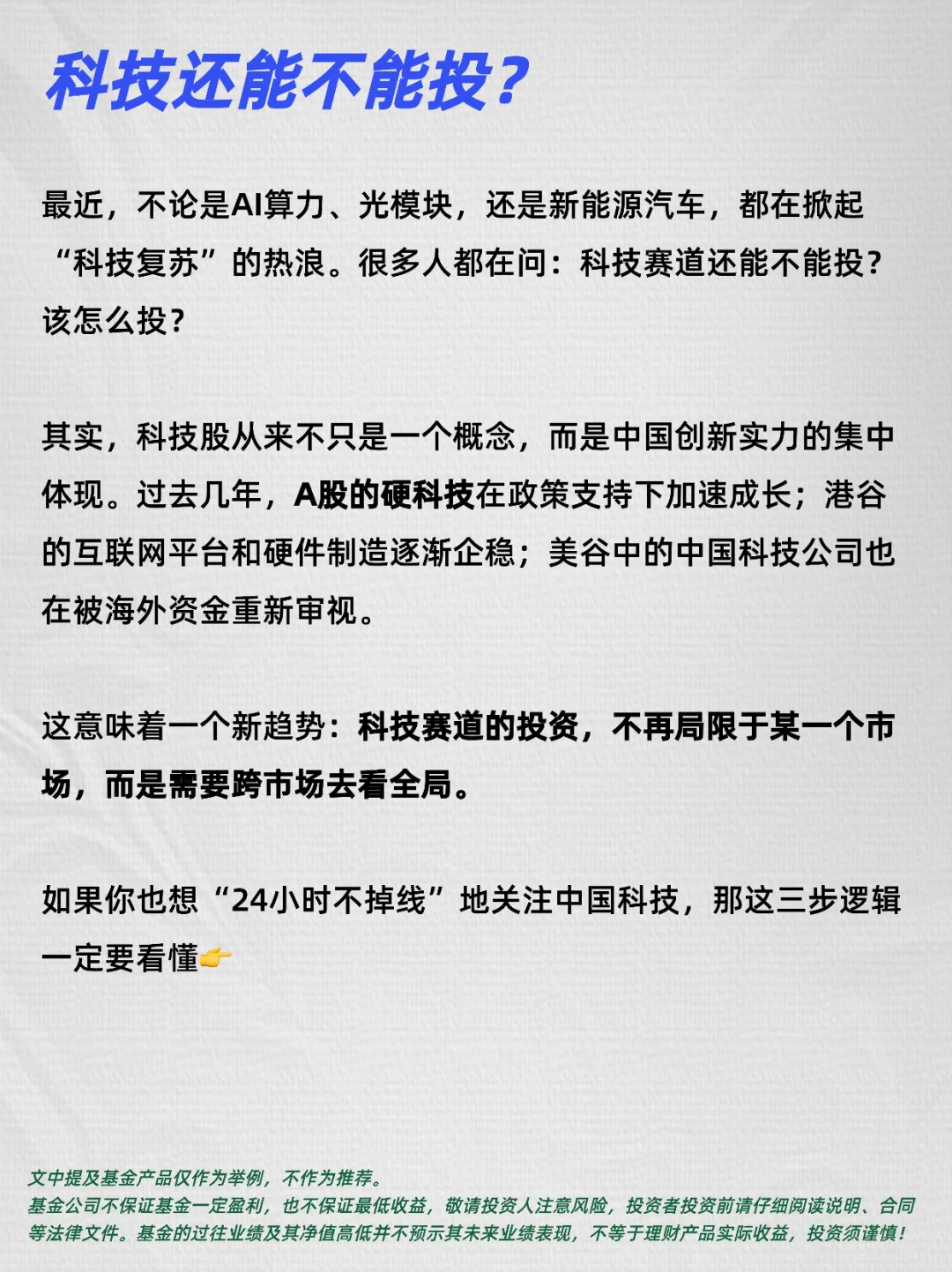 [向右R]最近,不论是AI算力、光模块,还是新能源汽车,都在掀起“科技复苏”的热浪。很多人都在问:科技赛道还能不能投?该怎么投?