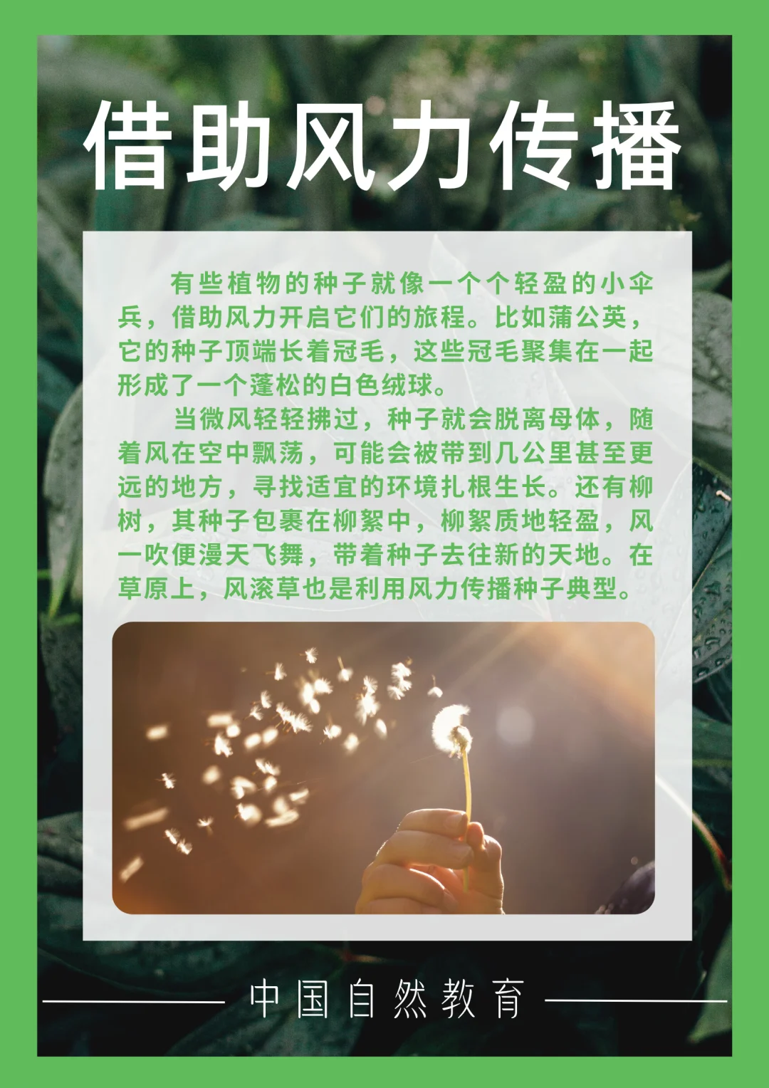 植物把种子送出去的方式你知道吗?🌱 蒲公英带“白色小伞”,风一吹就飘向远方,落地就能扎根;苍耳浑身带刺,偷偷粘在动物皮毛上“搭便车”,跑遍山川;椰子更牛,裹着坚硬外壳漂在海上,漂几个月到新海岛就发芽。 还有豌豆荚成熟就“啪”地炸开,把种子弹到好几米外!原来每颗小草、每棵大树,都曾是勇敢的“旅行家”。
