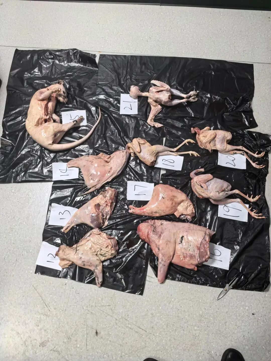 随后,警方从车子后备箱中搜出一堆处理好的“野货”:3只国家二级保护动物猫头鹰,还有果子狸、野猪、麂子等“三有动物”,妥妥的“牢底坐穿套餐”。