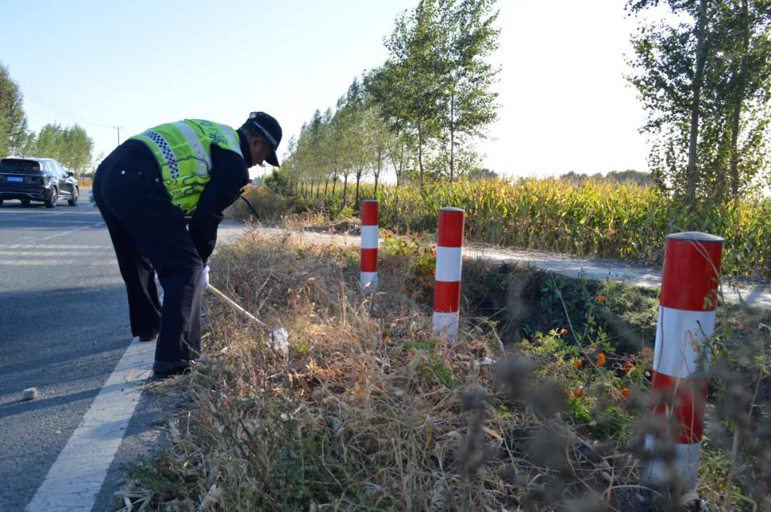 杂草清理完毕后,队员们继续巡逻,完善安全防护设施。在隐患突出路段,他们为过往农机车辆免费粘贴反光贴,并用醒目标语提醒驾驶人减速慢行、注意观察、文明礼让。此外,大队调整勤务模式,安排警力每天早晚高峰在重点路段往返巡查,确保车辆安全有序通行。