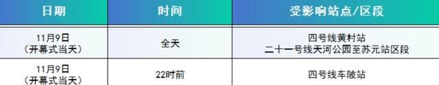 四号线黄村站、二十一号线天河公园至苏元站全天停止对外服务。