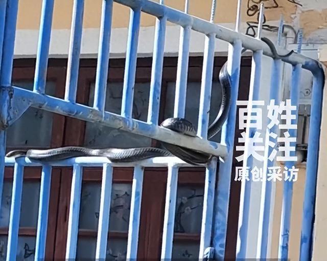 11月6日,黔西南州晴隆县一居民家中,惊现一条1.6米长的剧毒眼镜蛇,盘踞在铁门上晒太阳。吓出冷汗的居民赶紧拨打119求助。见有人靠近,眼镜蛇缓缓爬到了院子里的水袋下方躲藏。