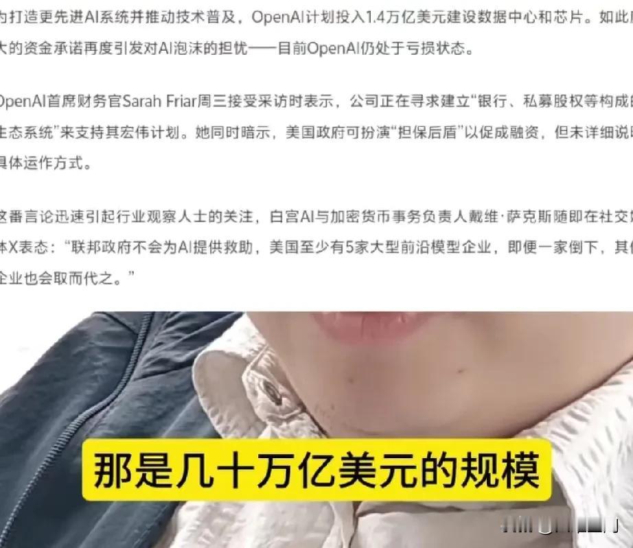 美国国资委要给openAI兜底,这次美国AI通过关联交易,把AI泡沫吹成几十万亿美元的泡沫,已经另外一个美债级别的危机了,openAI在非公开场合说如果openAI倒下,希望美国政府来给它兜底,美国政府估计印钞机干冒烟了,都都兜不了这个底,几十万亿美元的泡沫,几乎还没有任何实质的应用大规模出现,估值就敢搞这么高!