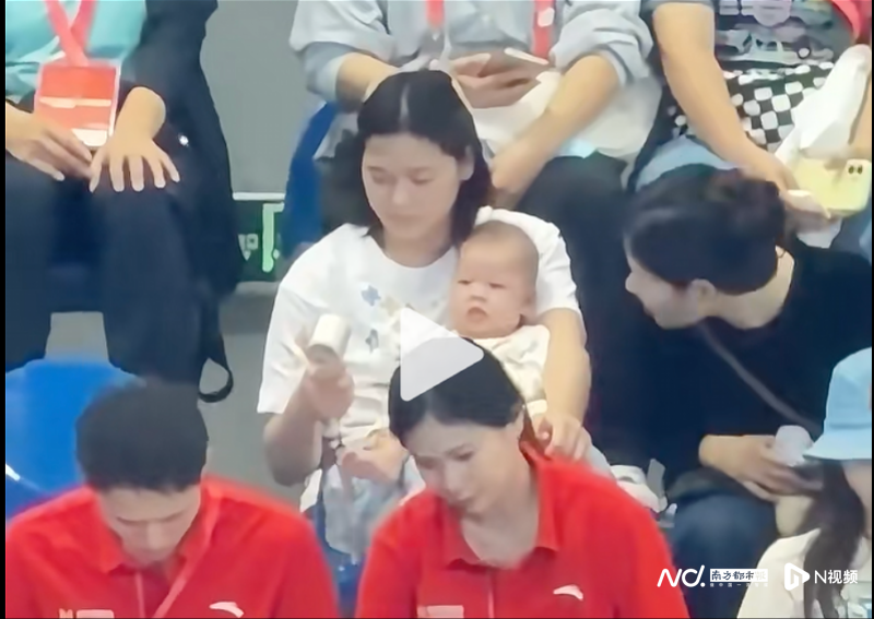 值得一提的是,已结束本届全运会比赛任务的全红婵在看台上一边抱着师哥谢思埸家的小宝宝,一边疯狂为广东队加油助威。