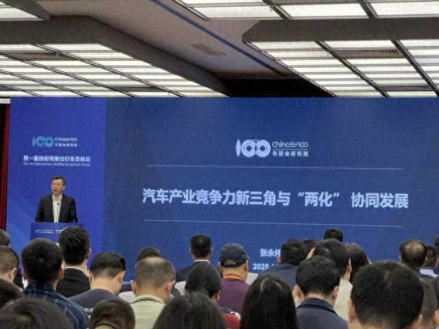 张永伟随后具体谈及了推动“两化”协同发展的四个意义。他首先给出了智能化时代汽车产业竞争力的“新三角模型”。