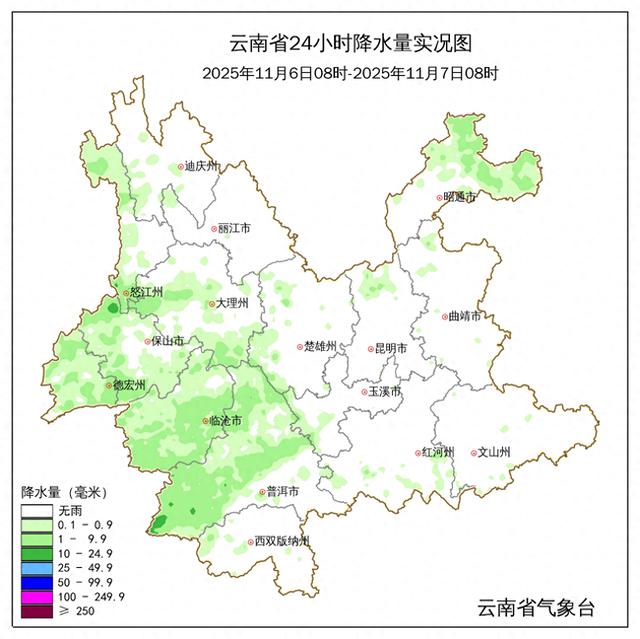 云南受暖湿气流和弱冷空气影响,昨天保山市北部、普洱市西部降小到中雨,德宏州、保山市西部和南部、大理州、怒江州、迪庆州西南部、临沧市、普洱市中北部、昭通市北部降小雨,其他地区多云。全省累计雨量最大为孟连县勐马镇双相站(29.3毫米)、全省平均雨量0.5毫米。