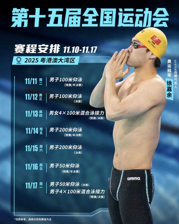 本届全运会,徐嘉余依然专注于仰泳,报了男子50米、100米、200米仰泳三个项目。